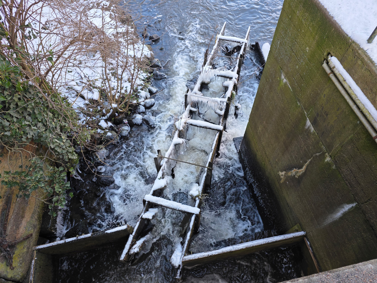 Gegen Mittag sind wir zu einem weiteren Spaziergang in die Innenstadt gestartet. Bei dieser Runde sind wir durch die Altstadt gelaufen. Hier gibt es keine Geschäfte, aber dafür die ältesten Häuser und damit für uns die interessantesten. Ich finde faszinierend, wieviel handwerkliche Kunst man in die Gestaltung dieser Häuser investiert hat. Das zeugt auch von einem hohen Wohlstand der Hauseigentümer. Über die Altstadt sind wir wieder am Rathaus und damit am Marktplatz angekommen. Einmal durch das Kaufhaus Galleria hindurchgegangen, kamen wir auf der anderen Seite aufgewärmt wieder heraus. Beim Stint Markt haben wir die bizarre Eisbartgestaltung der Fischtreppe von dem Stauwehr der Ilmenau bewundert. Der Stint Marktbereich darf bei unseren Besuchen in Lüneburg nicht fehlen. Mit dem alten Krahn aus Holz und den schönen historischen Gebäuden ringsherum, fühlen wir uns immer besonders angezogen. Wir sind weiter zur St. Nicolai gelaufen, weil wir sie schon seit langer Zeit nicht mehr besucht haben. Auch heute war ein Besuch leider nicht möglich, da sie verschlossen war. Wir sind weiter zum Platz Am Sande gelaufen und von da aus zurück zum Womo. In der Zwischenzeit hatte die Außentemperatur zwar 1°C erreicht, aber der Wind blies eisig kalt und ließ die Temperatur viel kälter erscheinen. Im Womo wieder angekommen, haben wir unseren Zwischenkaffee getrunken, etwas später als üblich, aber genauso genussvoll.