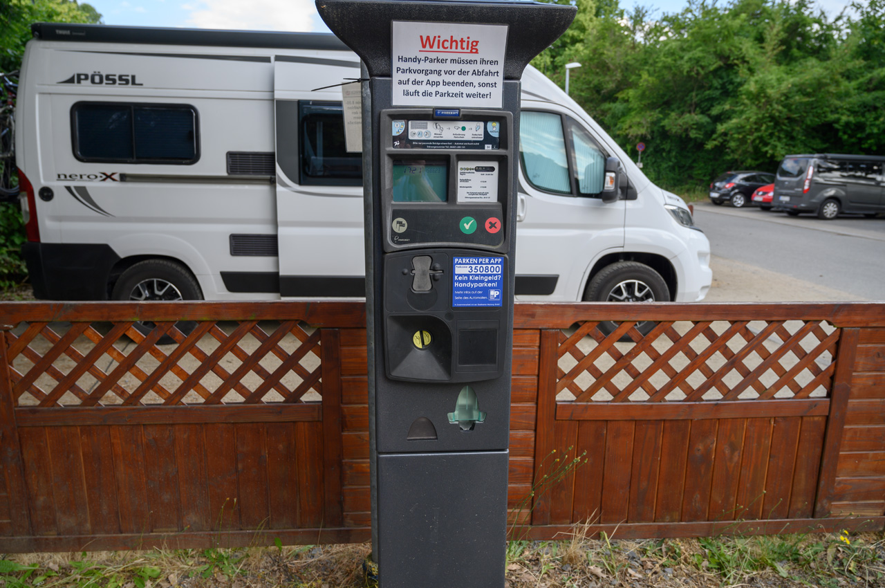 - Die Stellplatzgebühren zahlt man über eine App via Handy oder an zwei Parksäulen mit Hartgeld.