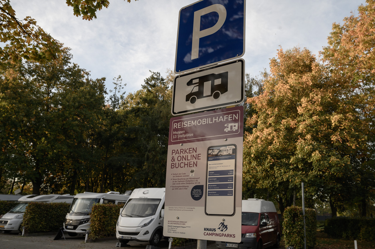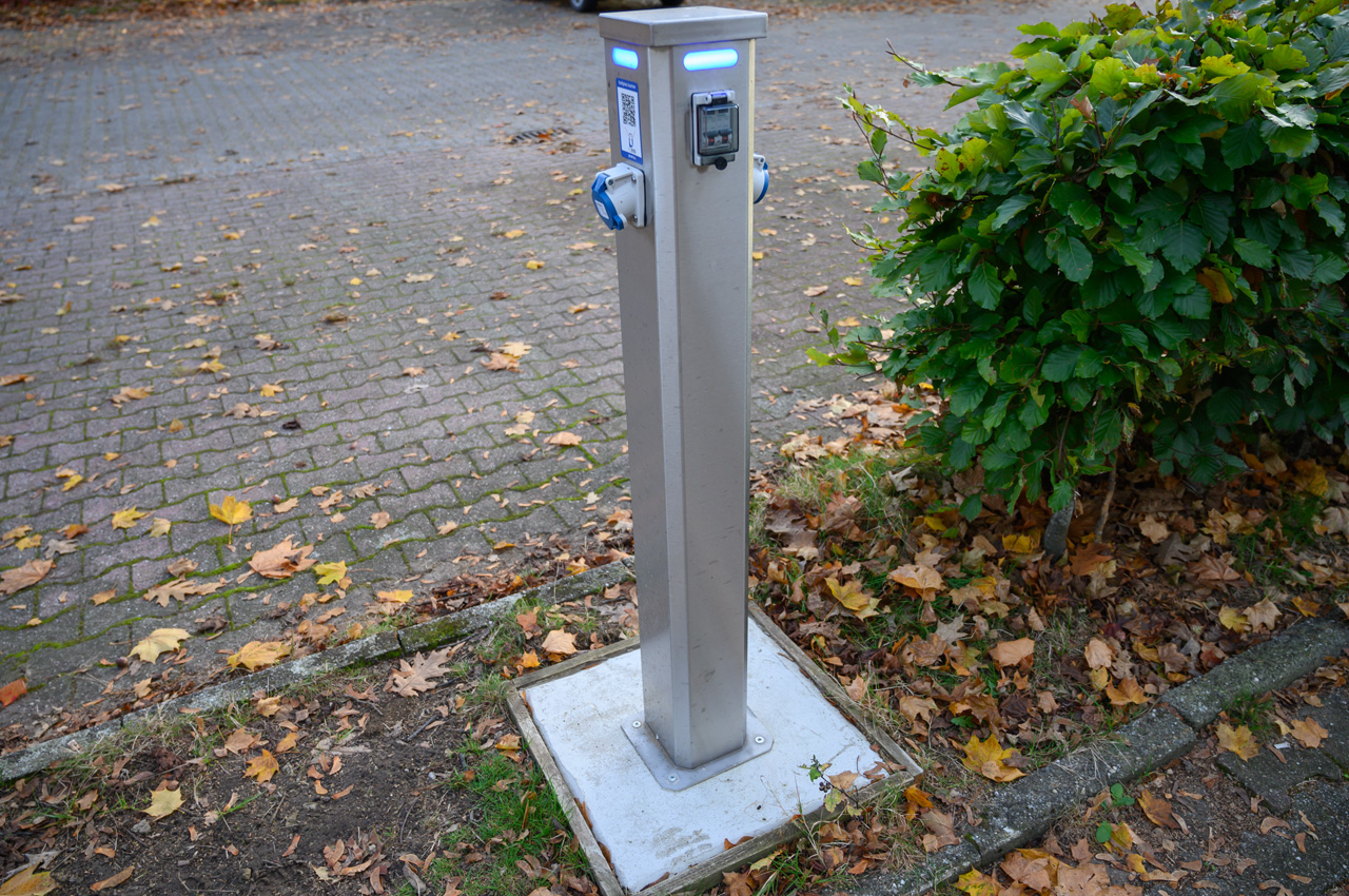 - Die Stromanschlüsse befinden sich bei den Heckenplätzen in zwei Schränken und auf der anderen Seite an Säulen. An den Heckenplätzen zahlt man mit Münzen, die Säulen muss man über eine App ansteuern.