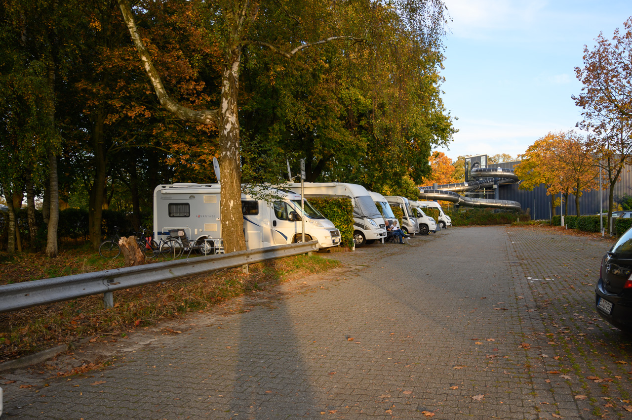 - Das Stellplatzgelände befindet sich am Rande eines großen Parkplatzes vom Schwimmbad.