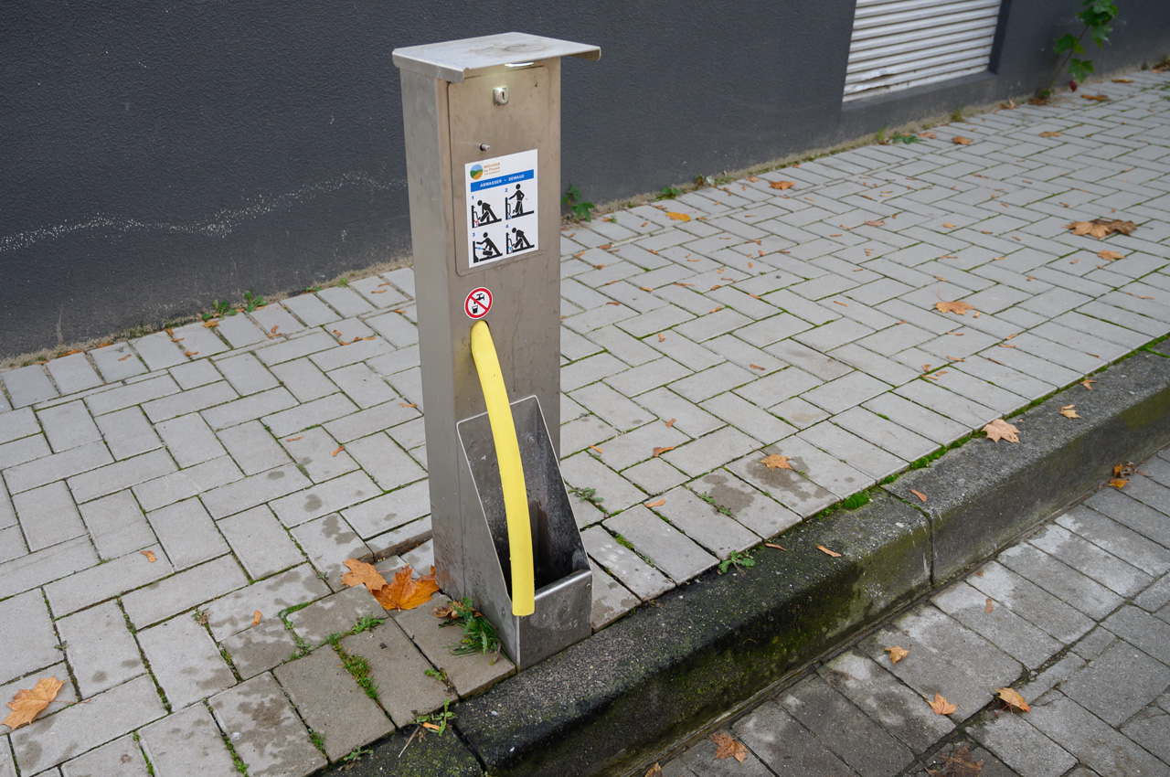 - Die V+E ist in den letzten Jahren erneuert worden. Sie befindet sich an der Fahrbahnseite zum Kirmesplatz. Der Bodeneinlass ist jetzt gut anfahrbar.
