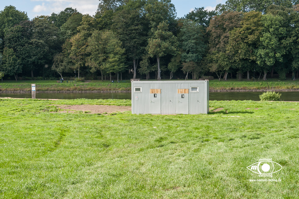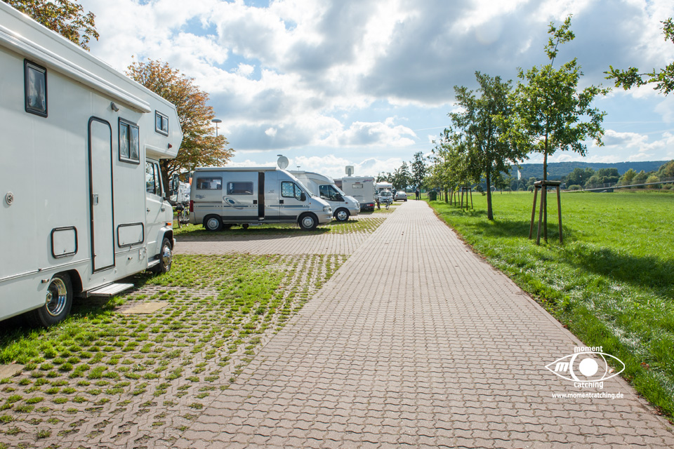 - Der Platz liegt direkt an der Weser. Vorgelagert ist ein großer Pkw- und Busparkplatz.