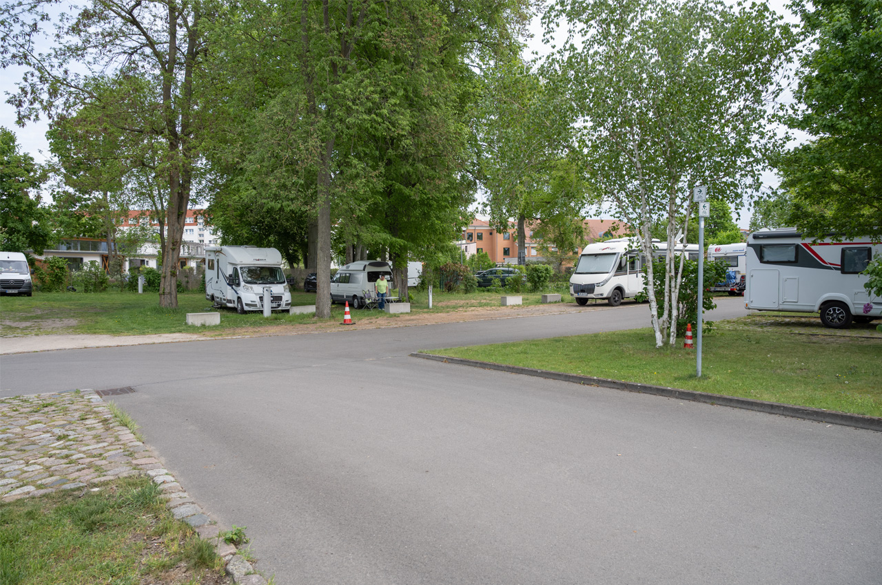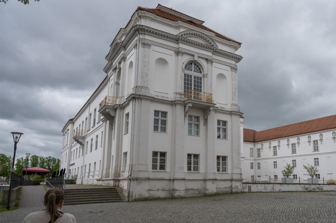 Nach dem Frühstück haben wir uns der Wettersituation geschuldet, dazu entschieden, heute keine Radtour zu machen. Gegen Mittag sind wir zu einem Altstadtspaziergang und zu einem Besuch des Schlossparkes aufgebrochen. Wir sind vorbei am Schloss auf dem Schlossplatz gelaufen. Das Schloss wollen wir nicht besichtigen, da es keine historische Inneneinrichtung mehr hat, wie so viele Schlösser, die die DDR-Zeit über sich ergehen lassen mussten. Auch von außen hat das Schlossgebäude schon wieder die ersten Nässeschäden im Sockelbereich. Da hat man wohl bei der ersten Sanierung nach der Wende gefuscht. Wir sind vorbei am Blumenthalschenhaus und dem Amtshauptmannshaus zur St.-Nicolai-Kirche gelaufen. Die Kirche war geöffnet. Beim Betreten des Westwerkes ist man erstmal etwas irritiert. Vorbei an einer großen Treppe kommt man in eine untere Halle, die heute nur noch für Ausstellungszwecke genutzt wird. Geht man die Treppe nach oben, gelangt man in das Kirchenschiff mit Chor und Orgelempore. Das Kirchenschiff hat als Decke ein Tonnengewölbe aus Holz. Das ist eine sehr interessante Architektur. Auch die Orgelempore einschließlich der Orgel sehen sehr eigenwillig aus. Wir sind zurück zum Schloss gelaufen, vorbei an dem Monument der Kurfürstin Louise Henriette, zum Eingang des Schlossparkes. Seit 2009, wo auf dem Gelände des Schlossparkes die Landesgartenschau vom Land Brandenburg stattgefunden hat, ist der Zutritt zum Park kostenpflichtig. Mit 6,-€ ist man dabei. Wir brauchten auf Grund unserer Schwerbehinderung nur 4,-€ bezahlen. Der Park hat uns nicht begeistert. Der größte Teil ist ein einfacher Landschaftspark, der schon einen verwilderten Eindruck macht. Als Gipfel empfanden wir, dass man, um die Fontäne im Schlossteich sehen zu können, einen Euro in eine Bezahlsäule stecken muss. Dann läuft die Fontäne 5 Minuten. Der sehr aufwendig gestaltete ehemalige Bereich der Landesgartenschau war schon etwas interessanter, ob er allerdings 6,-€ Eintritt rechtfertigt, darüber kann man streiten. Wir haben den Park durch einen Seitenausgang am Schlosshafen verlassen und waren dadurch schnell wieder an unserem Womo. Dort gab es unseren Nachmittagskaffee.