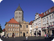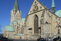 Der Hohe Dom St. Maria, St. Liborius, St. Kilian ist die Kathedralkirche des Erzbistums Paderborn und liegt im Zentrum der Paderborner Innenstadt, oberhalb der Paderquellen. Die ortsbildprägende Anlage mit dem markanten mächtigen Westturm über dem Chor, der von zwei runden Türmen flankiert wird, ist überwiegend in spätromanischen und gotischen Formen gehalten.