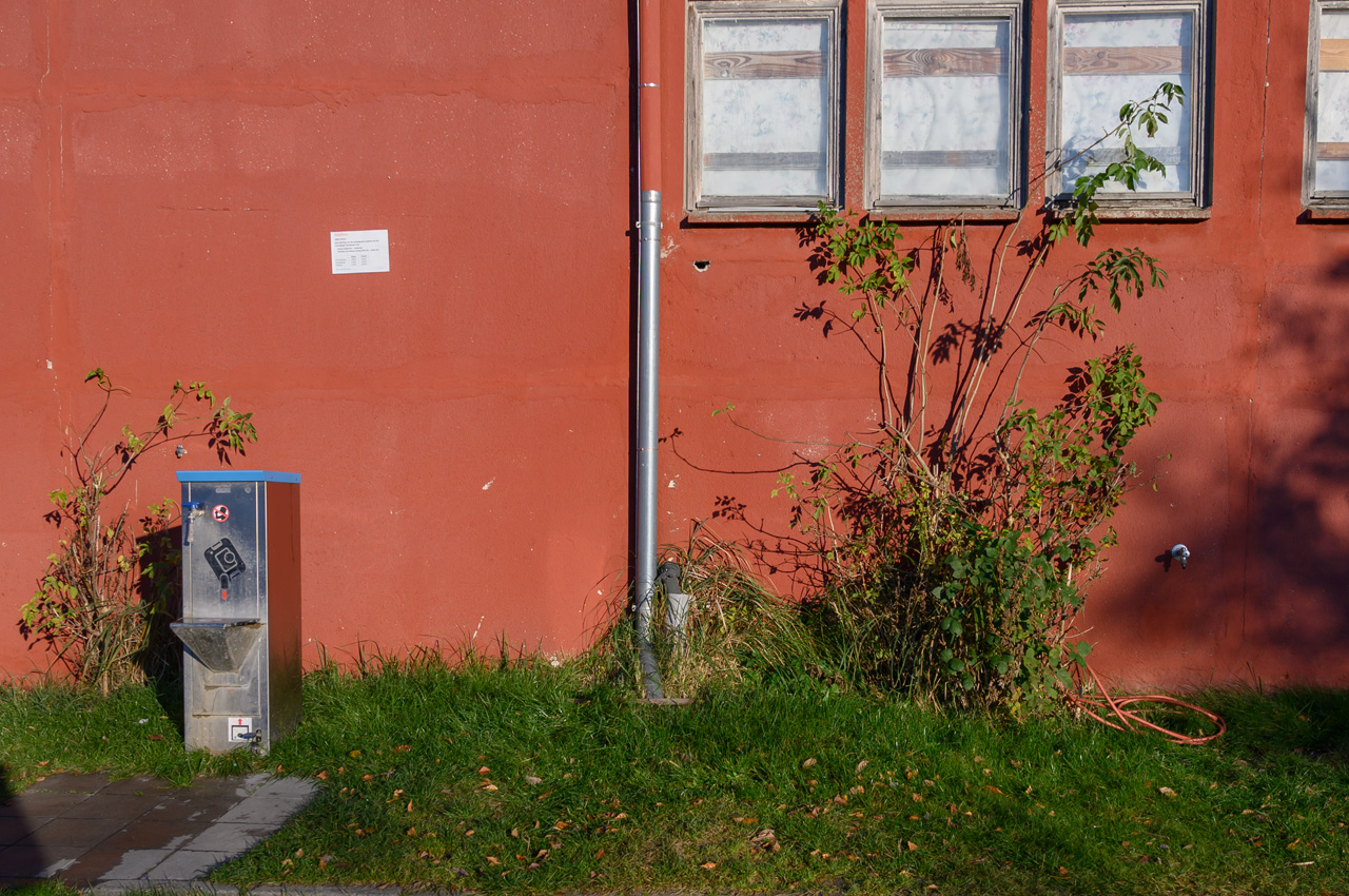 - Die V+E Einrichtungen sind etwas verstreut hinter dem Rezeptionsgebäude bzw. an der Stirnseite ist der Bodeneinlass für Grauwasser. Die Einrichtungen sind videoüberwacht und zahlungspflichtig. Eine Wanne für die Fäkalienentleerung ist an der Rückfront des Gebäudes. Ca. 5 Meter daneben ist eine Frischwasserversorgung über einen frostsicheren Anschluss.
