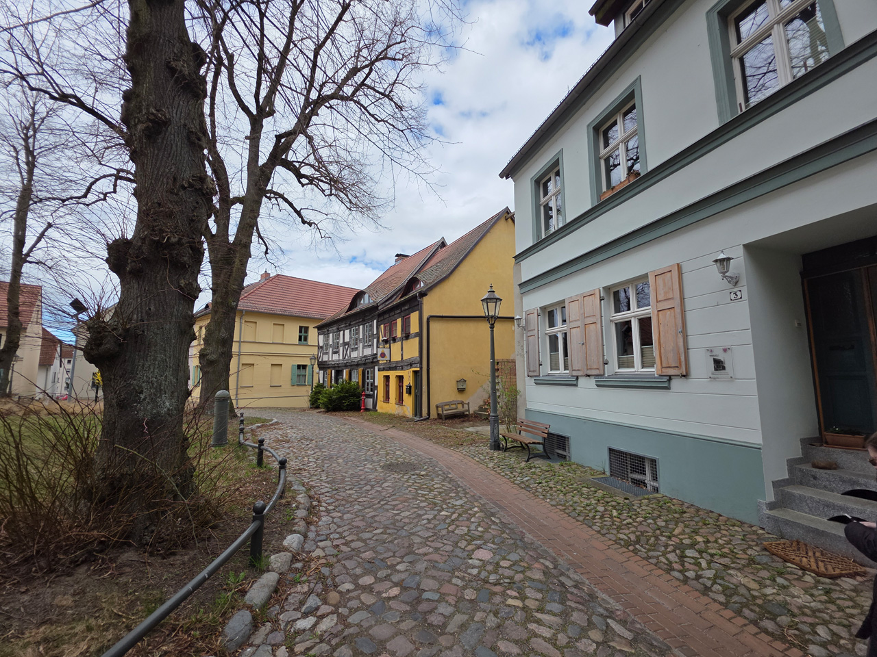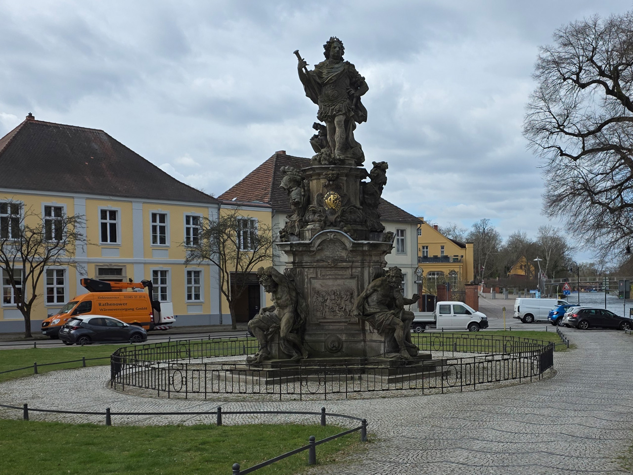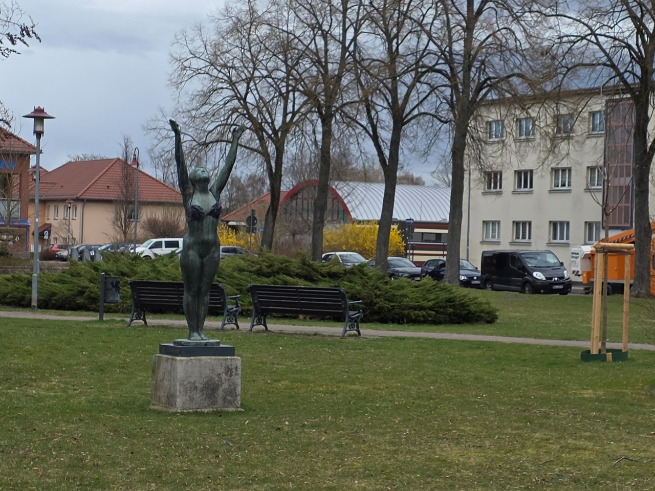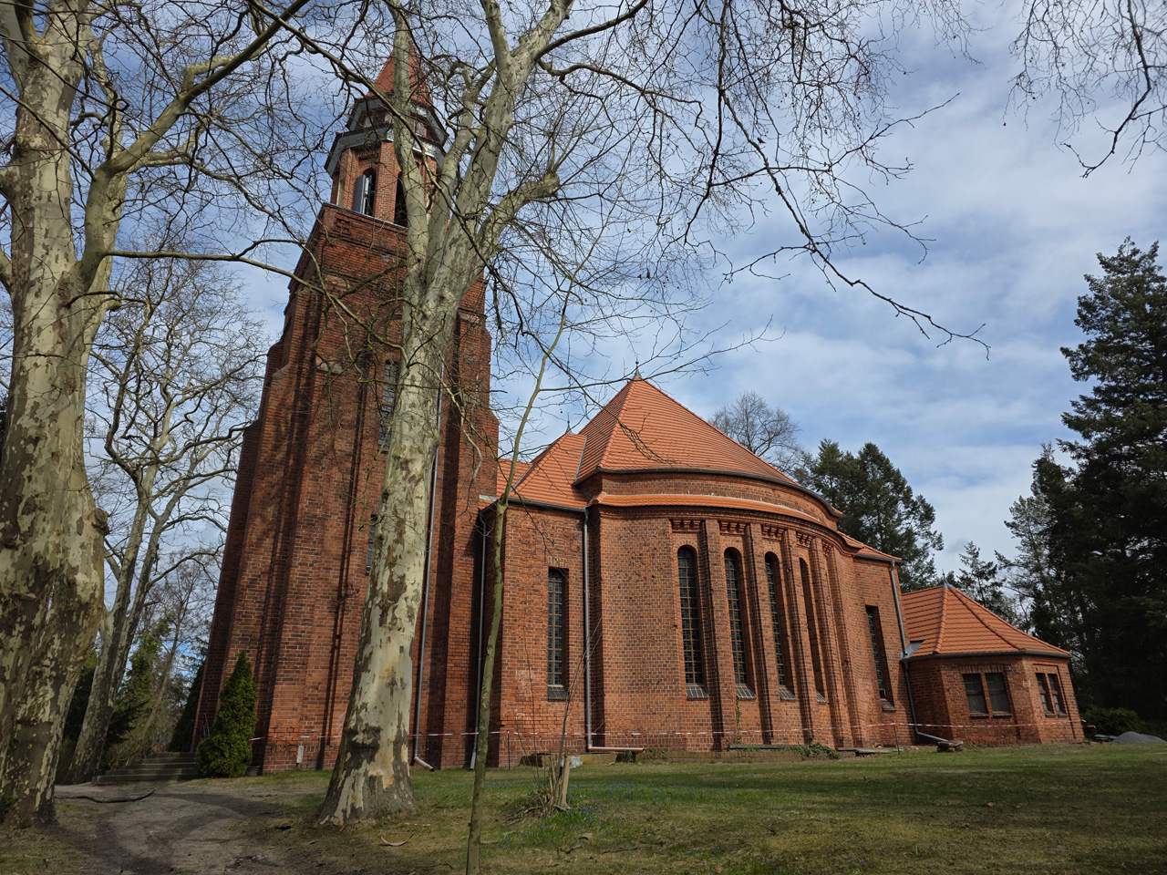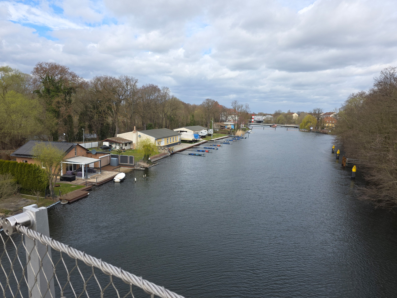 Gegen Mittag sind wir aufgebrochen zu einem Spaziergang durch Rathenow. Wir sind entlang der Stadtschleuse auf den historischen Friedhof am Weinberg zugelaufen. Die Stadtschleuse ist fast trockengelegt. Man hat anscheinend im Winter den Grund der Schleusenkammer gereinigt. Der alte Hafen, heute sowieso nur noch Sportboothafen, ist verwaist. Wir sind auf den Friedhof gegangen und haben dabei das historische Torhaus passiert. Wir sind hoch zu der Auferstehungskirche gelaufen, die aber verschlossen war. Dabei haben wir den historischen Teil des Friedhofes durchlaufen. Hier gibt es überwiegend große Familiengrabstätten, von denen die meisten einen verwaisten Eindruck machen. Das Problem wird in den kommenden Jahrzehnten immer größer werden. Diese Grabkultur hat sich in den letzten Jahrzehnten drastisch geändert, weg vom großen, festen Grab mit Stein, hin zur Urnenbestattung mit kleiner Fläche oder sogar anonymer Bestattung. Der Friedhof macht dadurch einen verwahrlosten Eindruck. Aber wer soll sich auch noch die vielen Jahr nach dem Tod um das Grab kümmern. Vom Friedhof aus sind wir zu der futuristisch anmutenden Weinbergbrücke gelaufen, die anläßlich der Buga 2015 erbaut wurde. Auf ihr überquert man in luftiger Höhe die Rathenower Havel. Am Ende der Brücke sollte man eigentlich auf das Gelände vom Optipark kommen, dass befindet sich aber noch im Winterschlaf. Alle Zugänge sind verschlossen. Wir sind aber am Brachymedialfernrohr angekommen. Man kann es sich nur aus sicherem Abstand ansehen. Wir mussten die Sportflächen umrunden und kamen am Einkaufzentrum wieder heraus. Wir sind in das Kaufland gegangen und haben unsere Lebensmittelvorräte aufgefrischt. Auf dem Weg zum Womo haben wir noch eine Schleife durch die kleine Altstadt gemacht. Die St.-Marien-Andreas-Kirche war verschlossen. Eine große Tafel informierte uns über die Neugestaltung des Inneren der Kirche. Das Umfeld der Kirche hat noch einige Bauten aus dem Mittelalter. Wir sind wieder in unserem kuschelig warmen Womo angekommen.