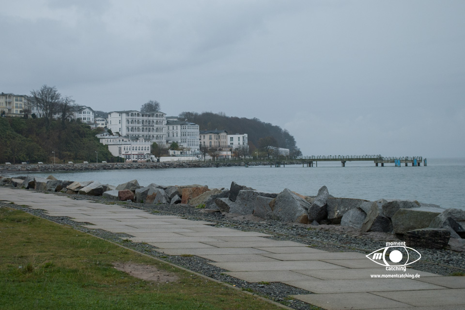 Die 274 m lange Hängebrücke von 2007: Fußgängerverbindung zwischen Stadtzentrum (Bahnhof, Rügen-Galerie, Kurhotel und Hauptstraße) und dem Sassnitzer Hafen. Konstruktion nach Plänen von Schlaich, Bergemann und Partner (Stuttgart); sie wurde mit dem Deutschen Brückenbaupreis 2010 ausgezeichnet.