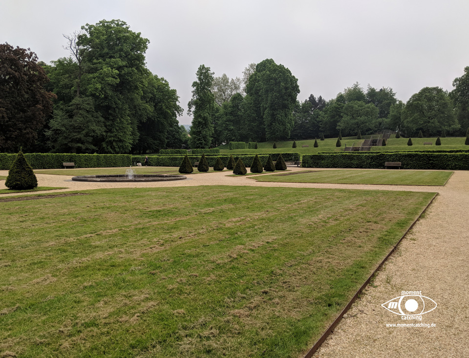 Im Stil des Barock wurde zwischen 1701 und 1706 ein Garten angelegt. Dieser bestand aus dem Parterre, einem flachen Gartenbereich mit zentralem Fontänenbassin vor dem Schloss, einem Kanal und drei Terrassen mit Treppen und Kaskaden in der Mittelachse. Im Jahr 1705 wurde zusätzlich eine Lindenallee angelegt. Diese Allee bestand aus 260 Bäumen und überquerte den Fluss Emmer. In den Jahren 1832 und 1865 wurde der Garten umgestaltet. Seit 2006 wurde der barocke Zustand im Süden des Parkes rekonstruiert und 2009 eröffnet.