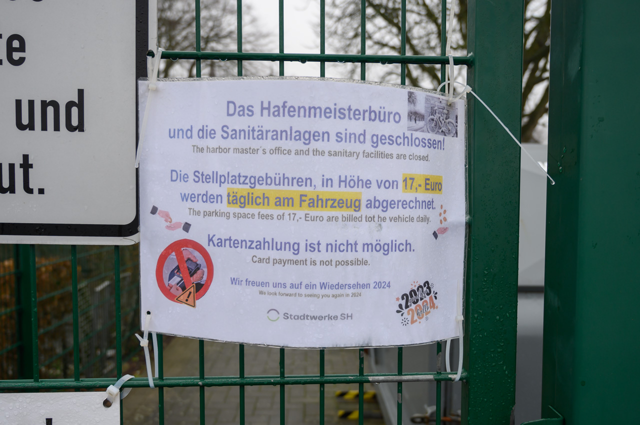 Anz. Stellpl.: 50 Boden: Schotter 🔛 9 Meter 🔌 ja 10A CEE; 🚰 ja 🚽 ja Becken 📥 ja Bodeneinlass 🚿 ja; 🚻 ja 📶 ja Max. Aufenthaltsdauer: Ohne Begrenzung 📆 ganzjährig/Dez. bis Febr kein Service Gasflaschentausch: ja, im Yachtshop Brötchenbestellung: am Kiosk Waschm./Trockner: nein Müllentsorgung: ja Mülltrennung: ja |