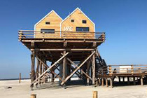 Das Strandbild von SPO ist geprägt von den bis zu 7 m hohen Pfahlbauten, die längst zum Wahrzeichen des Ortes geworden sind. Seit mehr als 100 Jahren tragen die Holzhütten auf Stelzen, aus Lärchenholz, maßgeblich zur Gestaltung des Strandbildes St. Peter-Ordings bei. An jedem Strand in Ording, Bad, Dorf und Böhl befinden sich Pfahlbauten nah an der Küste. Im Jahre 1911 öffnete der erste Pfahlbau, die "Giftbude", in SPO seine Türen. Der Name weist auf typisch norddeutsche Manier darauf hin, dass es hier nach dem Sprung ins kühle Nass "wat geev", denn die Hauptaufgabe der hölzernen Bauten war es schon damals, dem Wohlbefinden der Strandbesucher nachzukommen. Um den Wasserratten mehr Komfort und Sicherheit am Strand zu bieten, wurden zusätzlich Pfahlbauten für die Badeaufsicht sowie Umkleiden errichtet. Heute gibt es fünf Pfahlbaurestaurants am langen Strand von SPO, die den ein oder anderen Gaumenschmaus für Gäste und Einheimische zubereiten. Hier kann man mit bester Aussicht auf die Nordsee lecker essen gehen und auf den Terrassen die Sonne bei gutem Wetter genießen. Die Pfahlbauten wurden außerdem mit dem Etikett "einfaches Kulturgut" ausgezeichnet. Ort in Google Map anzeigen! |