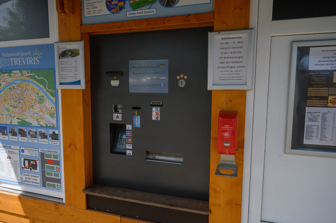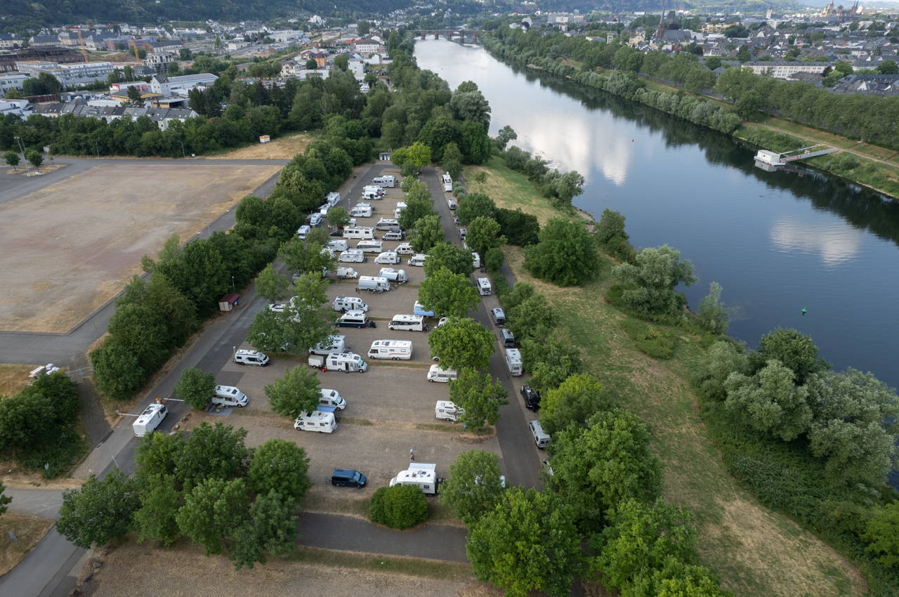 - Die Stellflächen befinden sich am Moselufer als Fortsetzung eines Campingplatzes. Das Gelände ist durch eine Schranke abgesichert. Bei Einfahrt muss man eine Magnetkarte ziehen. Die Stellflächenn sind nicht markiert und abgegrenzt.
