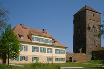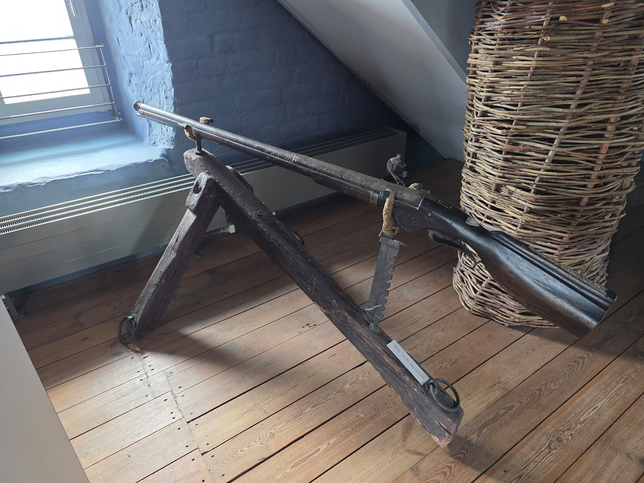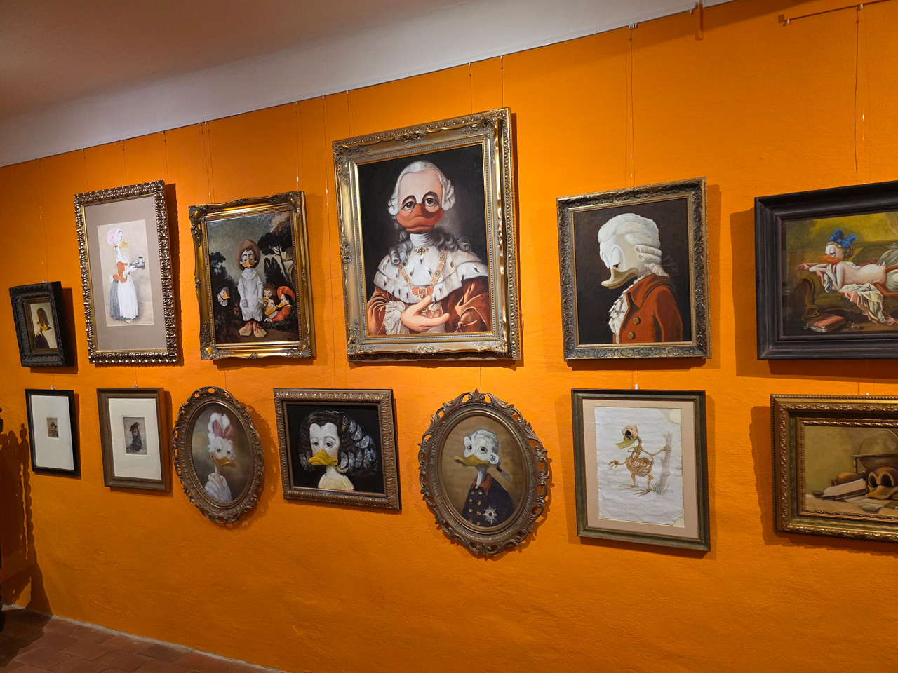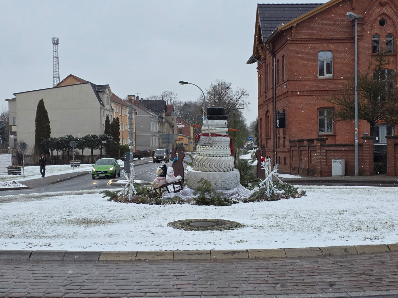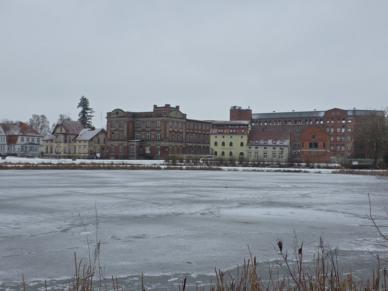Gegen 11:30 Uhr haben wir uns wieder auf den Weg in die Altstadt gemacht. Wir hatten jetzt um die 0°C und der Schnee war sehr matschig. Unser erstes Ziel war Roßmann am Markt. Susanne wollte sich dort Tape Band kaufen, weil ihr Rücken seit einigen Tagen wieder schmerzt. Nach erfolgreichem Einkauf sind wir zur Bischofsburg gelaufen. Trotz des Schneefalls von gestern, waren die Gehwege weitestgehend beräumt. In dem Turm der ehemaligen Bischofsburg befindet sich ein Museum über den 30-jährigen Krieg und in einem angrenzenden Gebäude ist eine Kunstausstellung. Die dort ausgestellten Exponate wurden von Schülern von der 7. bis zur 13. Klasse erstellt. Klassische Gemälde haben ein Gesicht bekommen, was an die Donald Duck Figuren angelehnt ist. Verrückte Idee. Da das Museum im Turm über 7 Etagen verteilt ist und es keinen Aufzug gibt, habe ich mir das Museum allein angesehen und Susanne hat sich mit einem Audioguide in den Vorraum zur Kunstausstellung gesetzt. Das Museum hat mich nicht begeistert. Die angebotenen Informationen hätte man in ein kleines Handbüchlein zusammenfassen können und in gedruckter Form vermarkten können. Das Museum kann man sich sparen, da es kaum Exponate hat. Die Kunstausstellung haben wir uns dann zusammen angesehen. Die war witzig. Waren doch großartige Ideen dabei, die klassischen Gemälde mit einem Entengesicht darzustellen. Nach dem Museumsbesuch sind wir an der Ostflanke der Stadtmauer entlang, zum Womo zurückgegangen. Auf diesem Weg hat man diverse schöne Blicke auf die wuchtige Stadtmauer und ihre einstigen Türme.