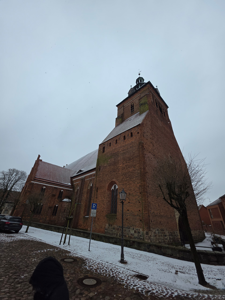Der Sonnenschein hat uns ins Freie gelockt. Wir sind gegen Mittag zu einem Spaziergang aufgebrochen. Wir sind bis zur Stadtmauer gelaufen und dann weiter, entlang der Mauer in Richtung Gröper Tor. Die Sonne wärmt schon etwas und obwohl das Thermometer -1°C anzeigt, ist an den meisten Stellen der Gehwege Nässe oder matschiger Schnee. Die Stadtmauer hatte nie einen Wehrgang und ist offensichtlich darum sehr wuchtig gestaltet. Statt des Wehrgangs hatte sie viele Wehrtürme, die nur nach außen aus Mauerwerk bestanden. Innen sind sie heute hohl, früher war da ein Holzeinbau. Am Gröper Tor sind wir in Richtung zum Marktplatz eingebogen. Am Marktplatz haben wir Mal auf die Speisenkarten von zwei Restaurants geschaut und waren erstaunt, wie hochpreisig die angebotenen Gerichte sind. Die Stadt macht auf uns nicht den Eindruck, dass hier die richtige Klientel für dieses Preisniveau wohnt. Scheint aber zu funktionieren. Wir sind vom Marktplatz aus wieder zurück zum Womo. War nicht der große Spaziergang, aber immerhin etwas über 3000 Schritte. Besser als nichts und kalt war uns inzwischen trotzdem.