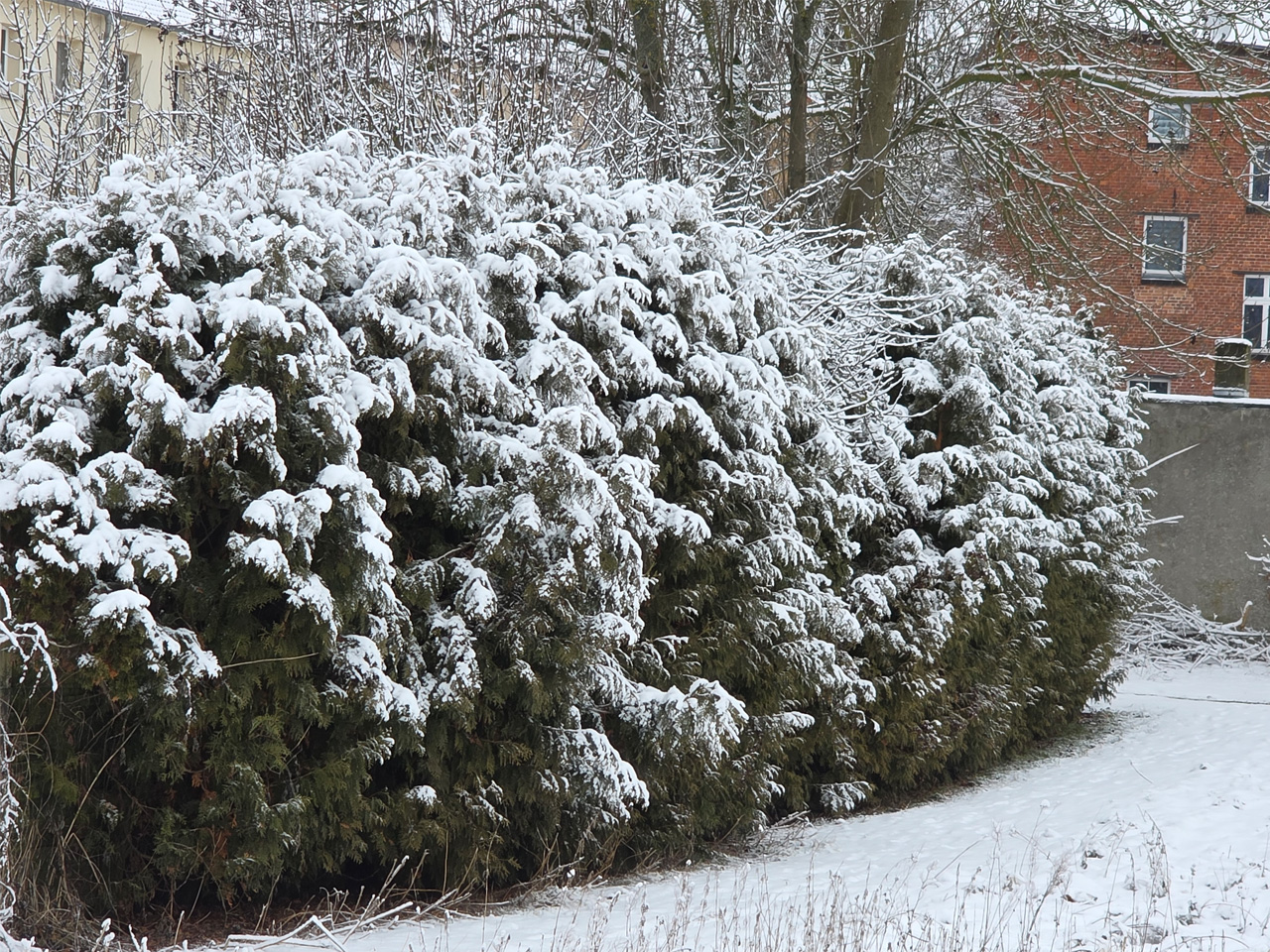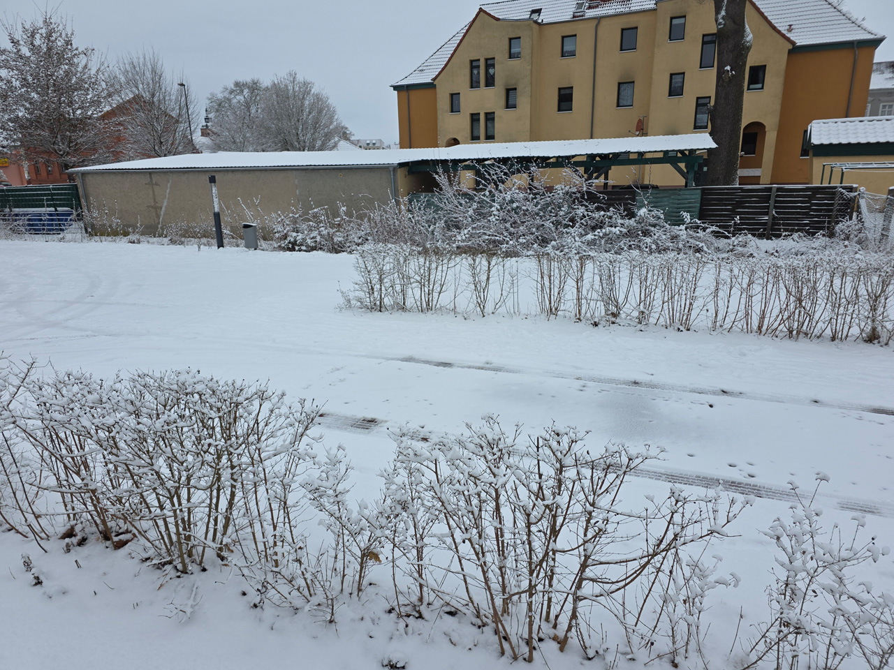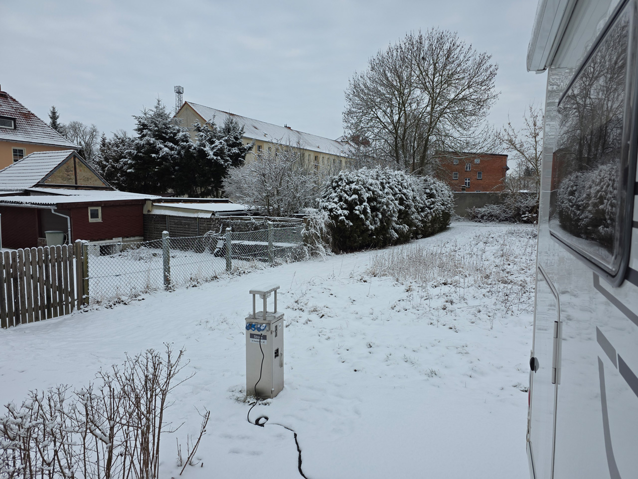 Den Rest des Nachmittages haben wir im Womo verbracht. Unser Umfeld hat im Laufe des Nachmittages eine gediegene Schneedecke erhalten und Bäume und Sträucher haben sich mit einem Schneekleid geschmückt. Der Winter ist zurück.