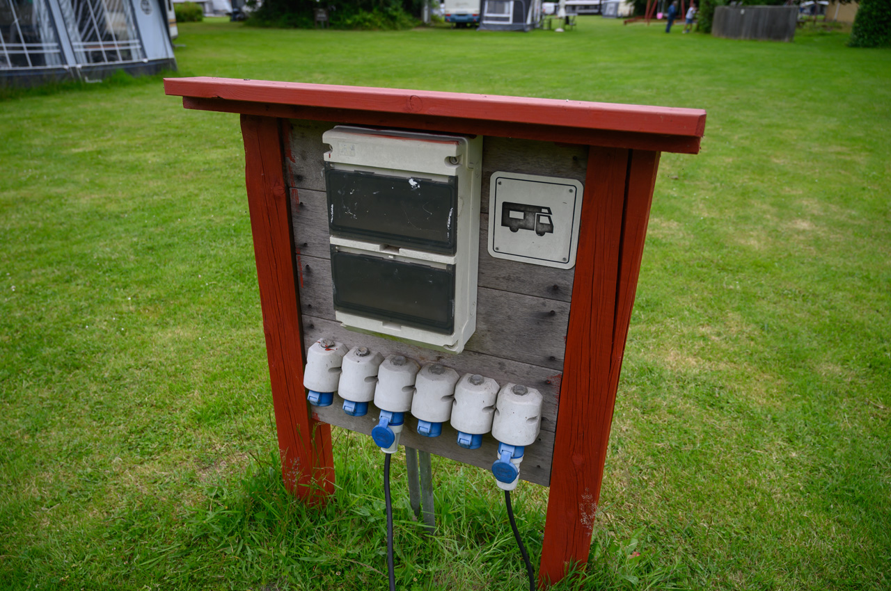 - Stromanschlüsse sind an allen Womo-Standflächen vorhanden. Teiweise braucht man ein längeres Kabel. Der Stromanschluss ist jeweils mit 6A abgesichert in CEE-Ausführung.