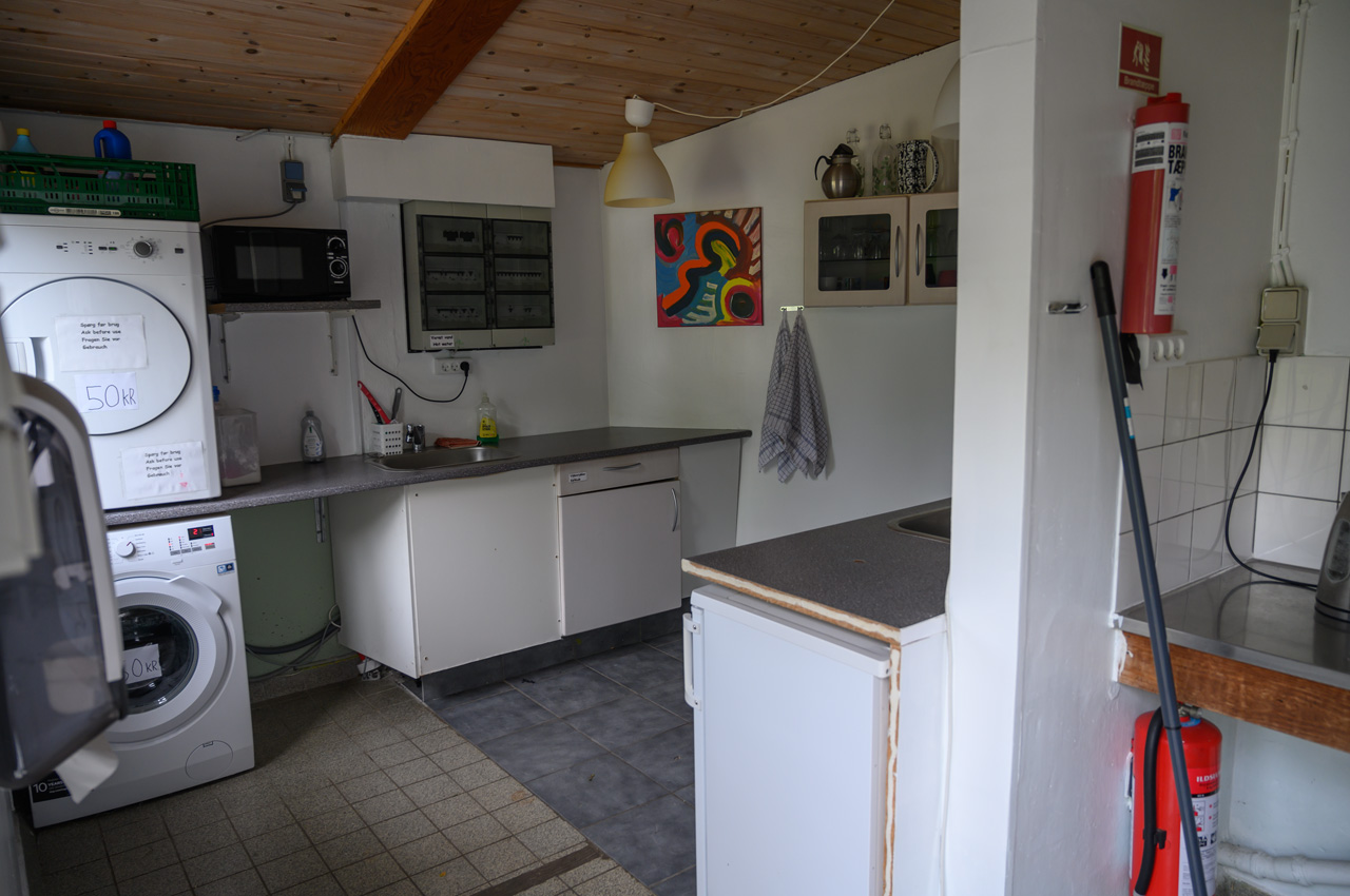 - Die Sanitäranlagen sind etwas in die Jahre gekommen aber brauchbar. Die Duschzelle ist groß und sehr geräumig. Die Nische für die Garderobe sehr klein, aber mit genügend Haken bestückt. Es gibt eine komplett ausgestattete Küche.