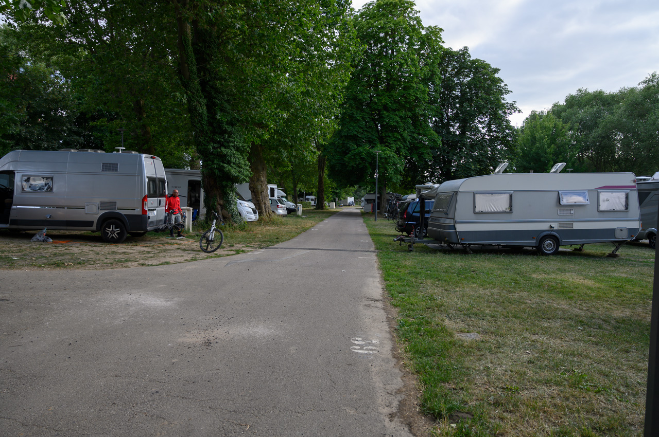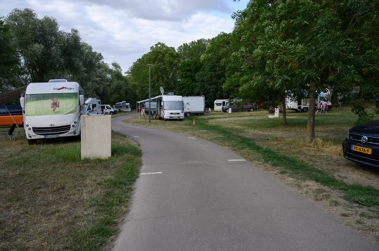 - Der Stellplatz liegt am Ufer der Mosel und ist nur durch eine Schrankenanlage zugänglich. Bevor die geöffnet wird, muss man sich in der Rezeption anmelden, dort bekommt man eine Stellfläche zugewiesen. Die Stellflächen sind sehr großzügig bemessen, aber teilweise sehr schräg und uneben.