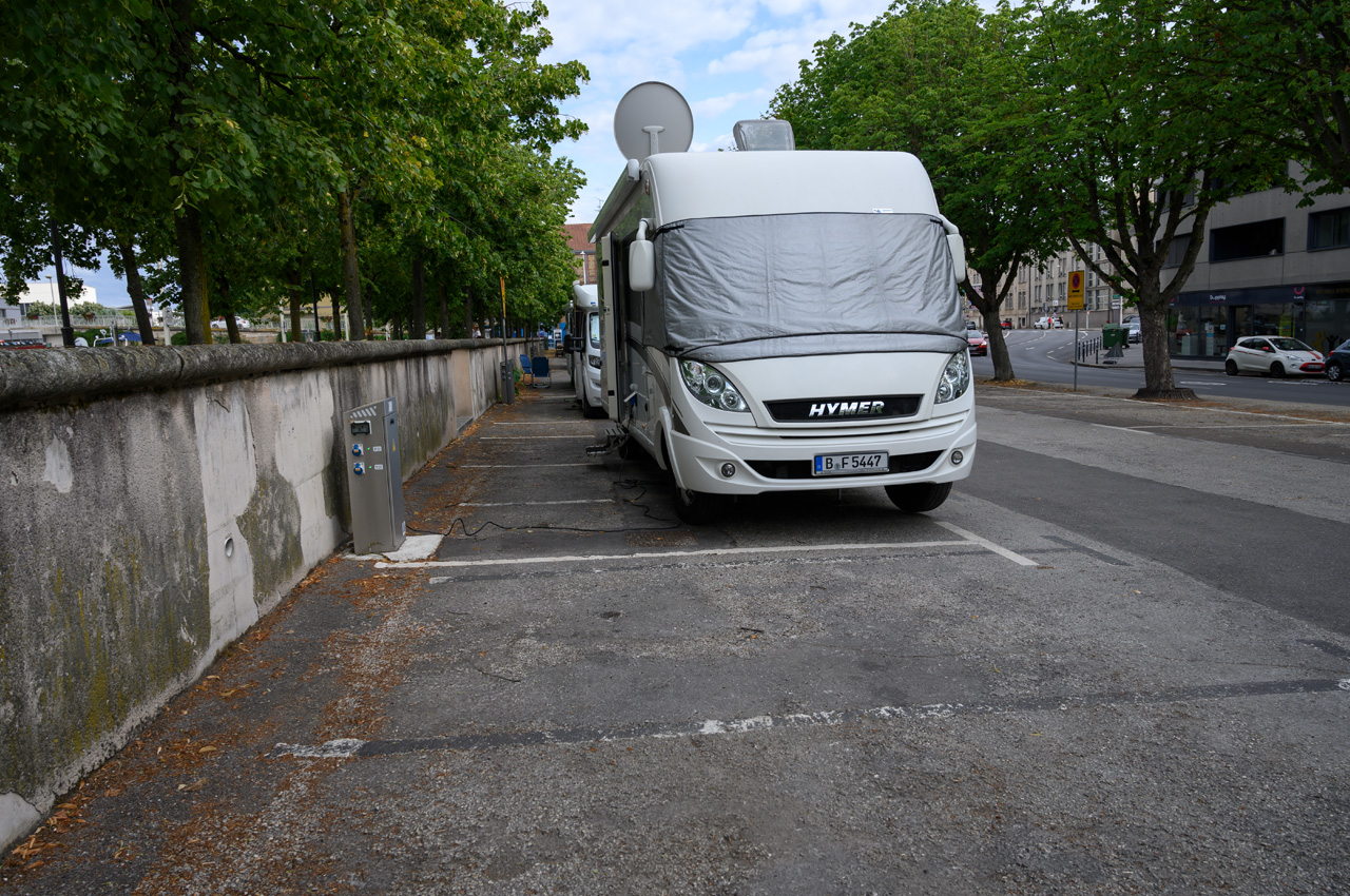 Der Platz liegt sehr günstig für einen Besuch der Altstadt. Auch zur Baguettbeschaffung frühmorgens und zu einem Lebensmitteldiscounter ist es nicht weit. Wer Ruhe mag ist hier falsch, man hat zumindestens tagsüber ziemlich heftig den Straßenlärm. Betreut wird der Stellplatz von einem Hafenmeister des angrenzenden Sportboothafens.