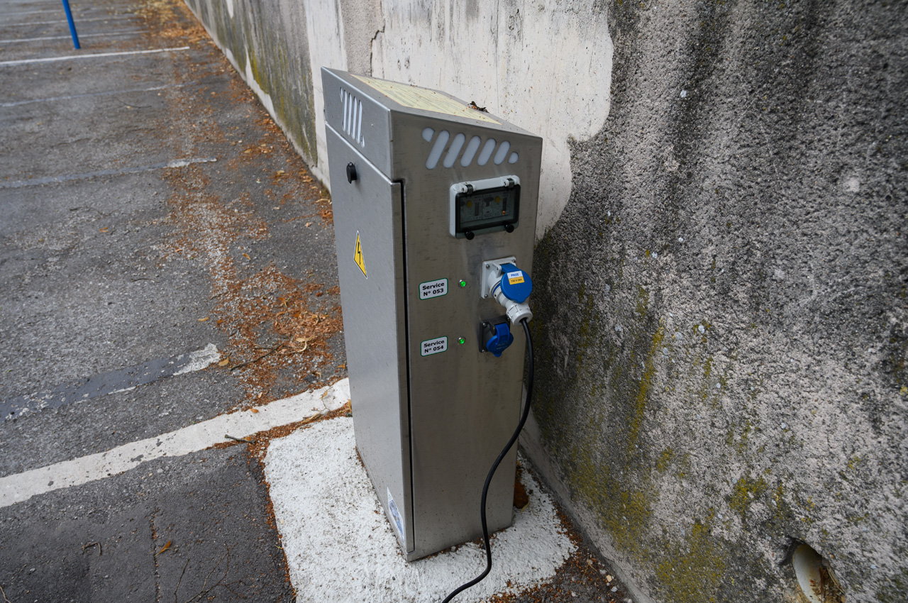 - Die Stromanschlüsse sind mit 10A abgesichert und in CEE Ausführung an entsprechend verteilten Säulen. Sie stehen allerdings nur auf der Hafenseite. Wenn man auf der Straßenseite steht muss man das Kabel über den Fahrweg legen. Die Sicherungen sind zugänglich.