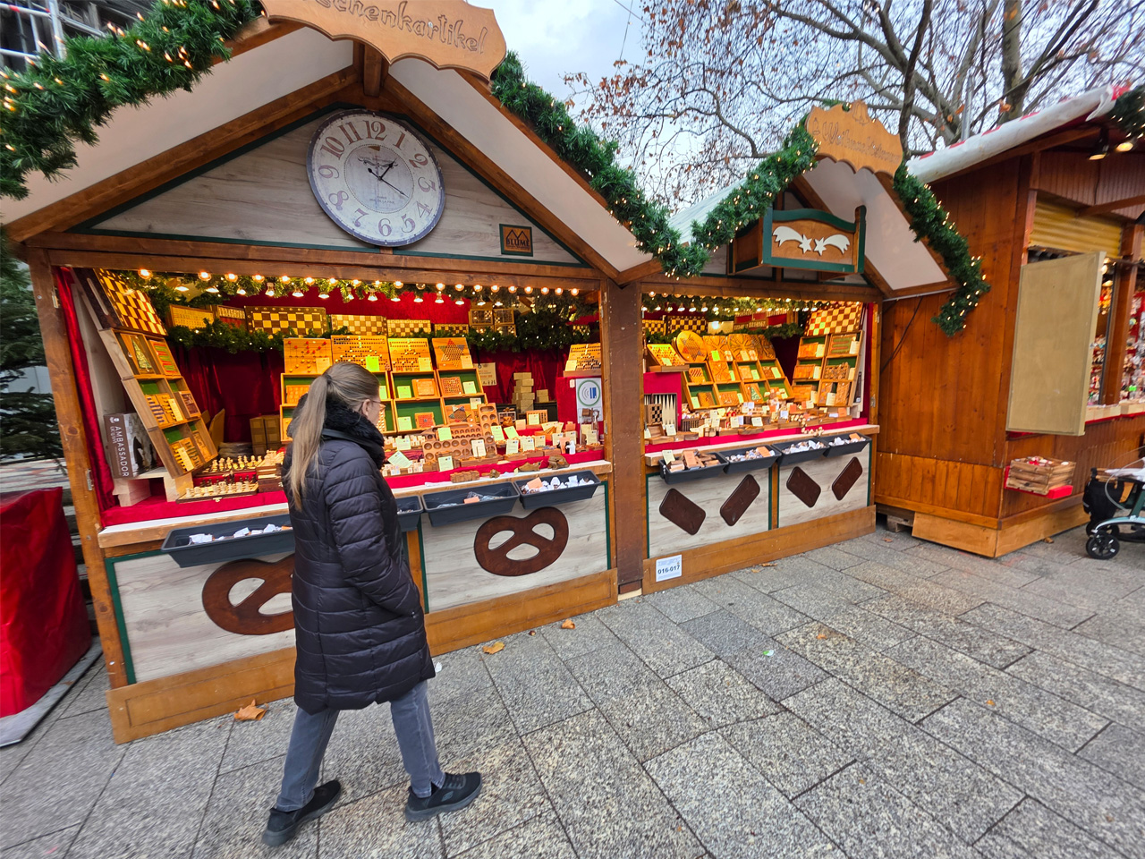 - 03.12.25: Wir hatten in der Gegend etwas zu erledigen und gelangten dadurch mehr zufällig auf diesen Weihnachtsmarkt. Da wir aber nun schon Mal da waren, wäre es ungeschickt gewesen, ihn nicht zu besuchen. Susanne war auf der Suche nach den kleinen Weihnachtsbäumen, von denen sie sich einen in Hannover auf dem Weihnachtsmarkt gekauft hatte, aber eben nur einen. Sie wollte noch einige mehr davon haben. Tatsächlich wurden wir an einem Stand fündig. Es waren original die gleichen. Jetzt war mein Sonnenschein richtig glücklich. An einem Futterstand habe ich mir eine Portion Kassler auf Grünkohl gegönnt und Susanne eine Grillwurst im Brötchen. Wir fanden den Weihnachtsmarkt sehr schön, nur leider war es noch taghell und das sogar mit etwas Sonnenschein.