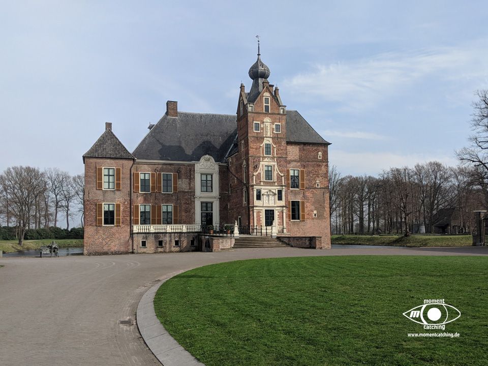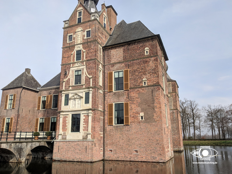 Das Wasserschloss wurde auf den Ruinen einer alten Burg gebaut, deren früheste Erwähnung aus dem Jahr 1365 stammt. Spuren dieses ehemaligen Wehrbaus sind noch im Keller des heutigen Schlosses sichtbar. Im 16. Jahrhundert erfolgte ein Neubau, dessen Form sich bis heute im Wesentlichen erhalten hat. Der Gebäudekomplex, der viele Elemente der Architektur der Renaissance enthält, ist vollständig von Wasser umgeben. Der Grundriss ist rechteckig. An allen vier Ecken befinden sich nahezu quadratische, überdachte Wehrtürme, deren nordöstlicher mit einer Zwiebelhaube versehen ist. An der nach Süden gerichteten Vorderfront wurde ein weiterer, höherer Zwiebelturm, der von der Fassade deutlich hervorragt, errichtet. Direkt über dem Eingang sind die Wappen von Hendrik van Isendoorn und seiner Ehefrau Sophia Stommel in einer Sandsteinskulptur eingelassen. Darüber befindet sich eine weitere Sandsteinskulptur, die Maarten van Rossum zeigt. Zum Eingang führte früher zentral eine Zugbrücke über den Burggraben. Diese wurde später durch eine permanente, aus Steinen gemauerte Bogenbrücke ersetzt, die nun an der linken Seite des ehemaligen Haupteingangs vorbeiführt. Am Anfang der Brücke befindet sich zu beiden Seiten je ein steinerner Löwenkopf auf einem Sockel. Dahinter schließt sich ein eisernes Brückengeländer an.