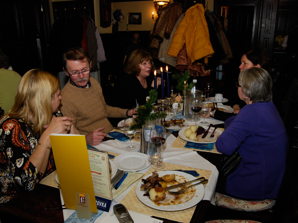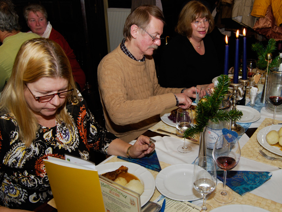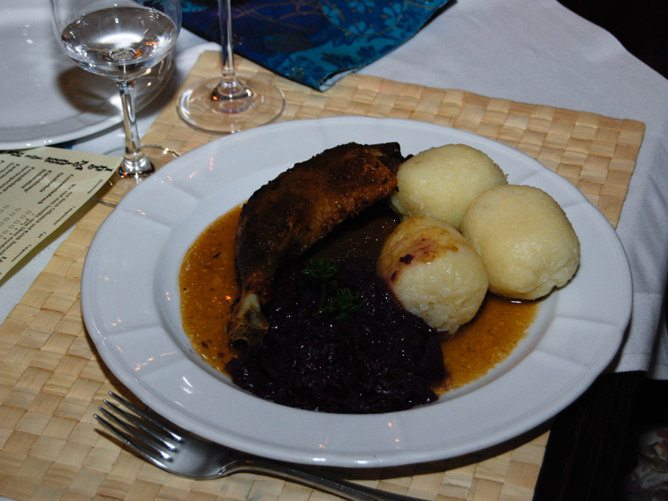Abends waren wir alle zusammen zum bestellten Gänseessen. Obwohl Susanne schon vorsichtshalber keine Gans gegessen hatte, hing sie den größten Teil der Nacht über dem Klobecken.