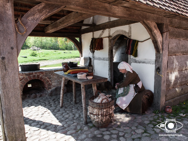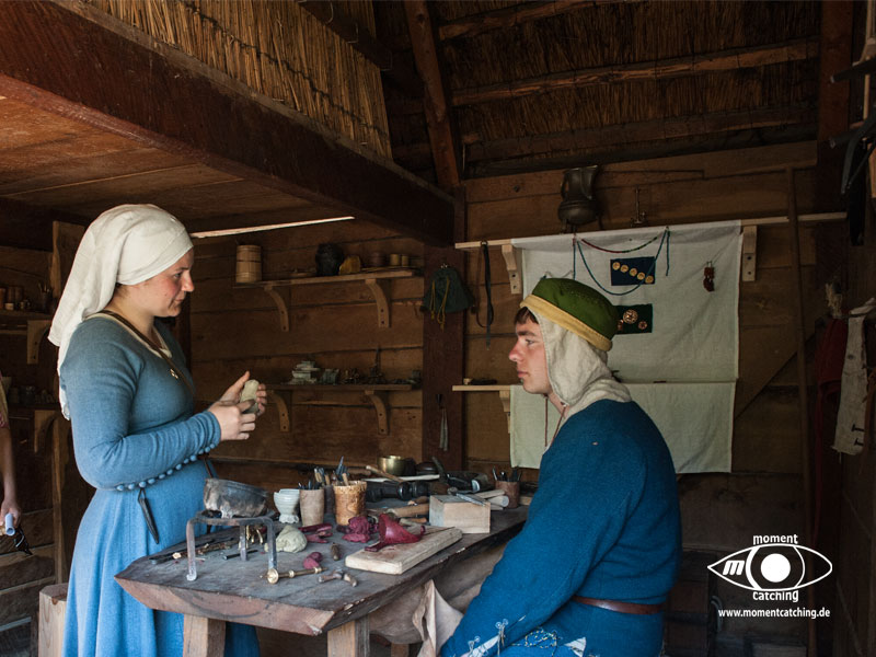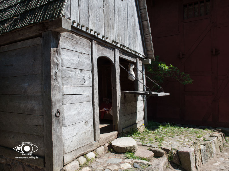 Gegenüber von Nyköbing/Falster liegt ein Museumsdorf der besonderen Art, das Mittelalterzentrum. Diese Anlage ist ein Stück lebendige Historie. Vom nachgebauten Ritterturnierplatz auf dem täglich Turnierkämpfe vorgeführt werden bis zur Webstube und zur Schmiede, alles lebt. Wir waren von diesem Zentrum tief beeindruckt, ganz besonders von den vielen Menschen die dort in ihrer Freizeit Exponate zeigen und erklären und mittelalterliche Handwerkzeuge in ihrem Gebrauch vorführen. Wir haben uns auf unsere Fahrräder gesetzt und sind auf der Brücke über den Guldborgsund gefahren in den kleinen Ort Sundby. Etwas nördlich liegt das Mittelalterzentrum, unser Ziel. Diese Anlage ist ein Stück lebendige Historie. Vom nachgebauten Ritterturnierplatz auf dem täglich Turnierkämpfe vorgeführt werden bis zur Webstube und zur Schmiede, alles lebt. Wir waren von diesem Zentrum tief beeindruckt, ganz besonders von den vielen Menschen die dort in ihrer Freizeit Exponate zeigen und erklären und mittelalterliche Handwerkzeuge in ihrem Gebrauch vorführen. |