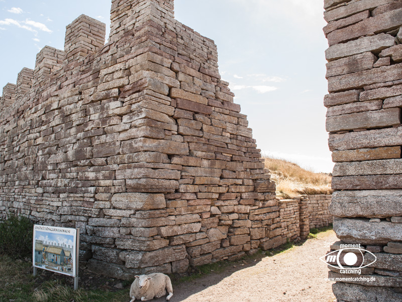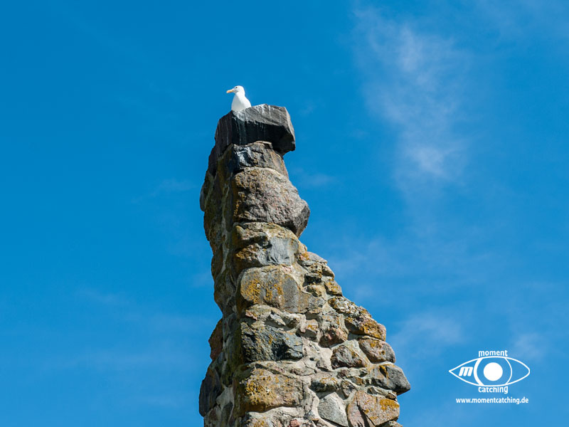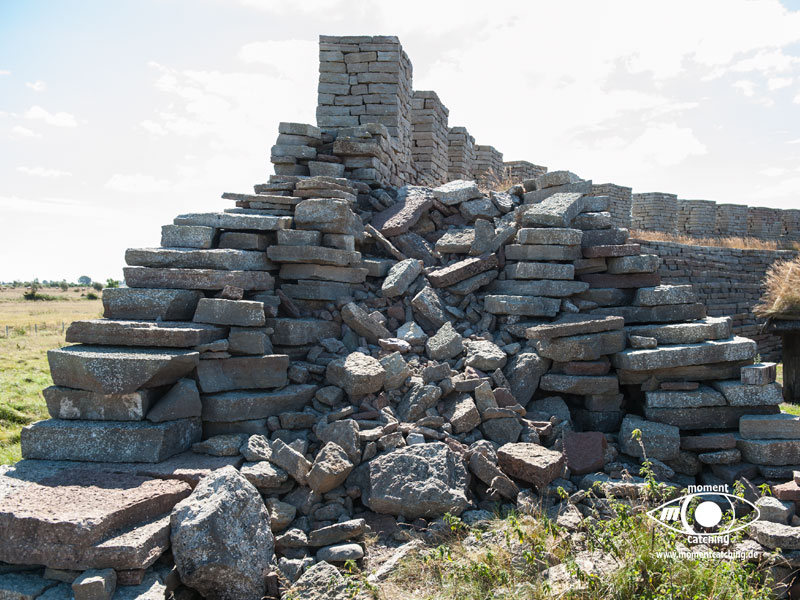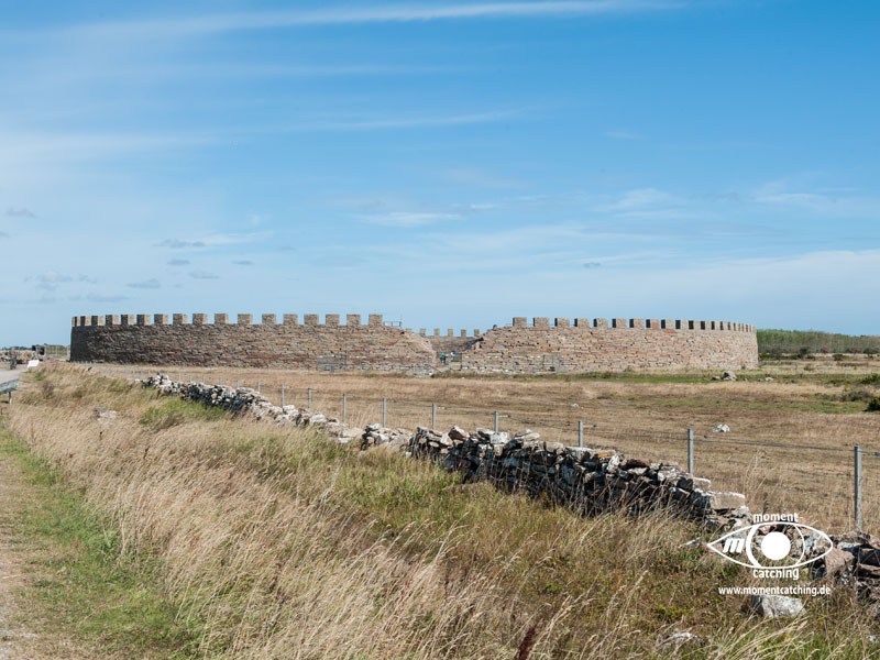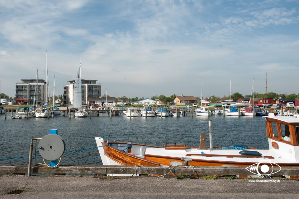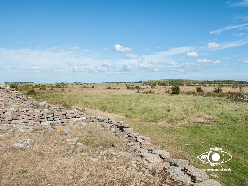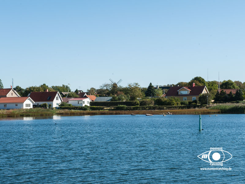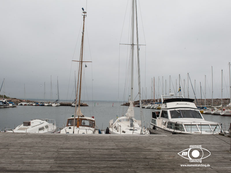Grönhögen war unser südlichster Hafen auf Öland. Er war als Ausgangspunkt für eine Radtour nach Eketorps Borg gedacht. Das Wetter zwang uns allerdings zu einem längeren Aufenthalt. Als wir in Grönhögen einliefen, begann der Kalmarsund bereits eine unangenehme Welle aufzubauen. Ein Glück empfahl der Hafenmeister, uns ins innere Hafenbecken zu legen. In den nächsten drei Tagen tobte sich ein kräftiger Westwind aus, der selbst das innere Hafenbecken zu einem Kessel kochendem Wasser machte. Einen Fender und eine Leine mussten wir Neptun opfern. Selbst das Fahrradfahren war eine echte Herausforderung. Bietet doch die Landschaft dort keinen Schutz vor Winden und wir hatten das Gefühl, dass er von allen Seiten kam. Trotzdem war unser Besuch der Wikingerburg in Eketorp ein schönes Erlebnis. Wir hatten Glück, wir haben den letzten Tag des Jahres erwischt, an dem die Burg noch offiziell besetzt war. Leider konnten wir die Landschaft des größten Alvarets der Welt (Unesco Welterbe) durch den Sturm nicht so richtig genießen. Bei unserer Abreise aus Grönhögen tat der Kalmarsund so, als könnte er kein Wässerchen trüben. Die Wasserfläche war wie mit einem Lineal abgezogen und bescherte uns eine ruhige Überfahrt zur Hanöbucht. In Grönhögen gibt es eine Bunkerstelle für Diesel. Was absolut schwedenuntypisch war, man kann dort nur bar bezahlen. Der freundliche Hafenmeister hat uns sein Auto angeboten, um damit nach Mörbylanga zu fahren. Dort gibt es einen Geldautomaten. Das ist schwedische Gastfreundschaft, die wir unseren gesamten Aufenthalt über bewundert haben.
