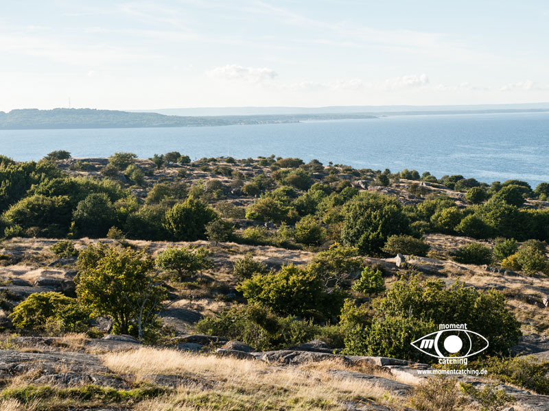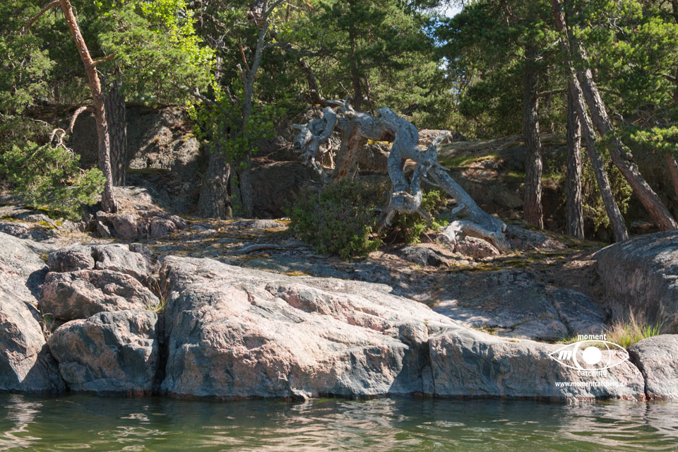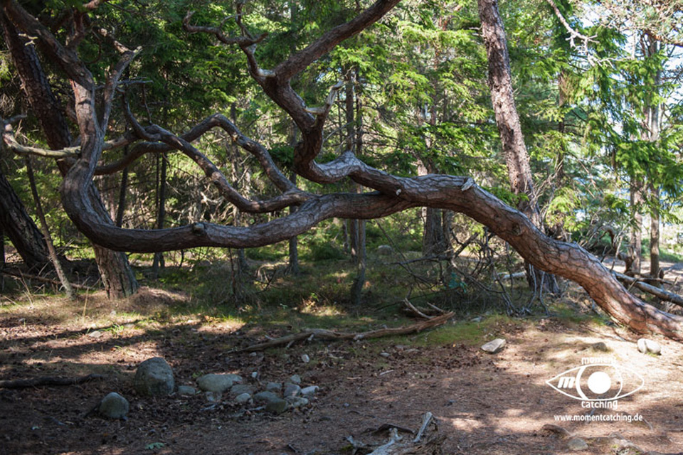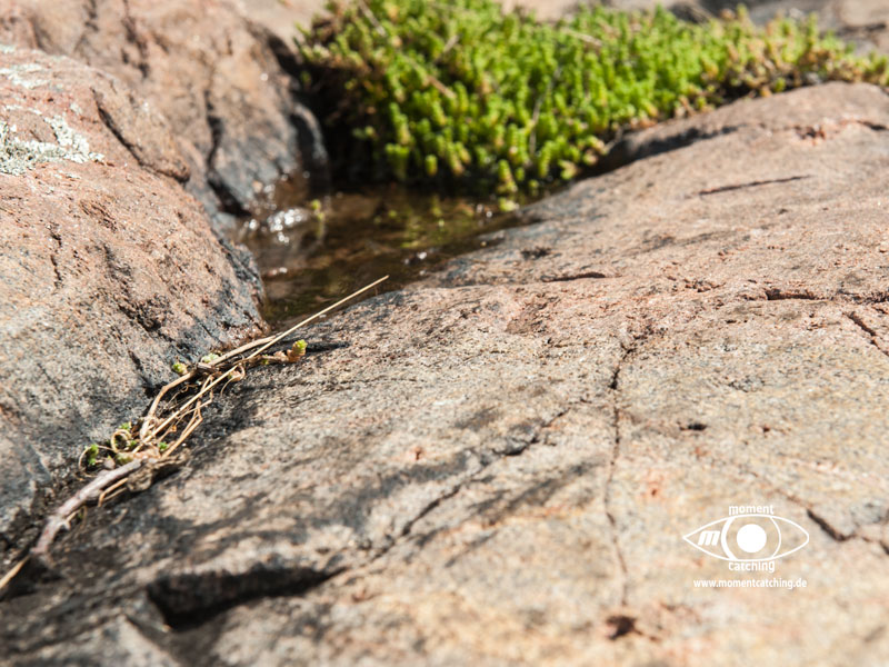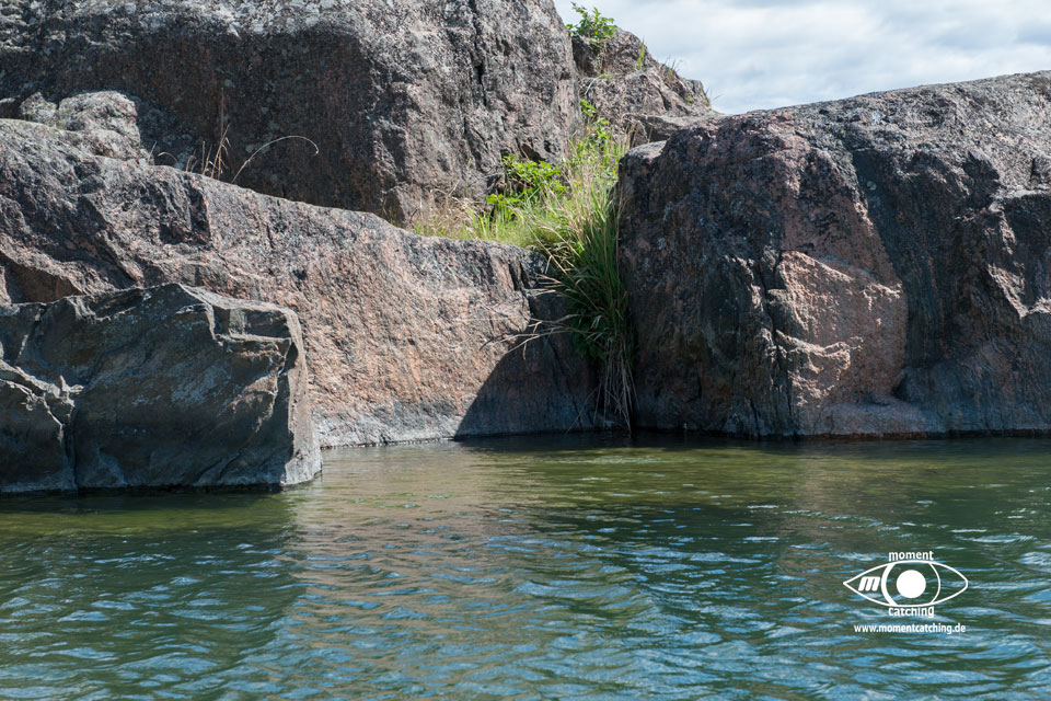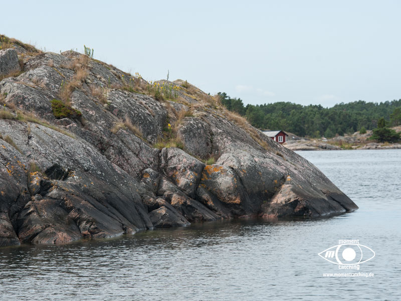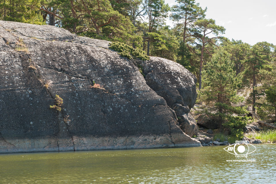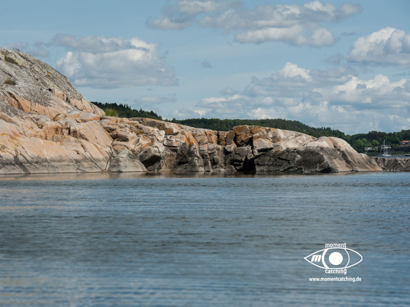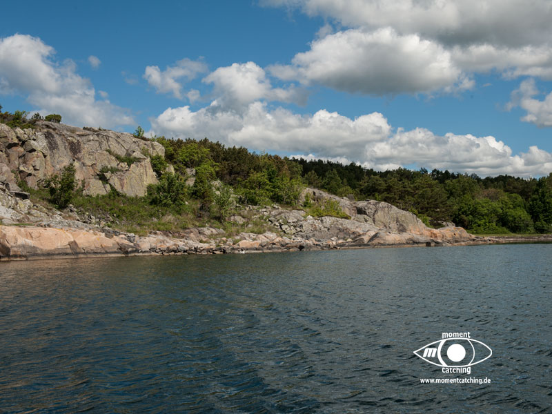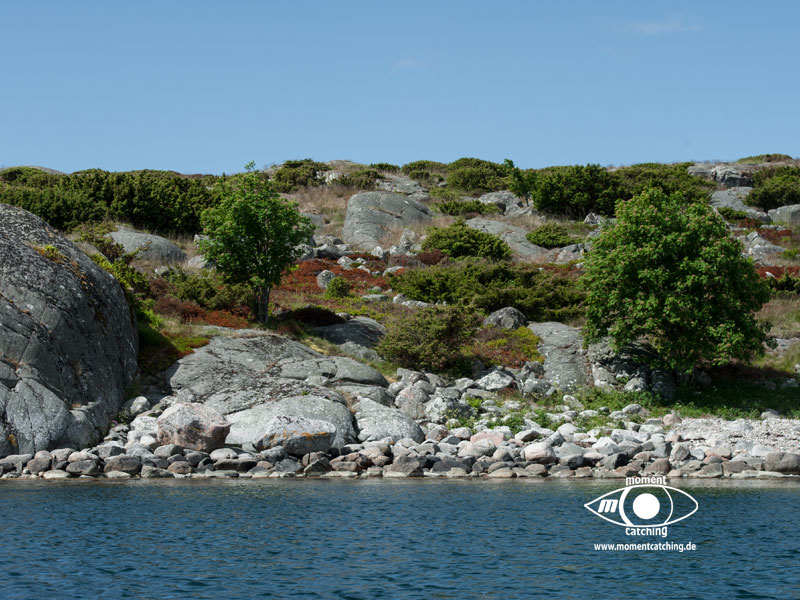 Nach den letzten Tagen mit Radtouren und vielen Landgängen stand uns nun der Sinn nach Ruhe und Abgeschiedenheit. Mönster Hamn erschien uns dafür eine gute Wahl und wir sollten Recht behalten. Diese relativ große Ankerbucht ist nach allen Seiten hin gut geschützt (Ausnahme bei Südwinden, aber selbst das ist auszuhalten) und der Ankergrund bietet guten Halt. Wir haben diverse Ausflüge mit unserem Beiboot gemacht und konnten dadurch die Inseln aus unterschiedlichen Blickrichtungen genießen. Diese Landschaft mit dem Mix aus Felsen, die teilweise große glatte Oberflächen bieten, auf denen man wie auf einem Heizkissen (nur bei Sonnenschein) liegen kann und den Heide- und Waldflächen, ist einfach einmalig und lässt ein unbeschreibliches Behaglichkeitsgefühl aufkommen.