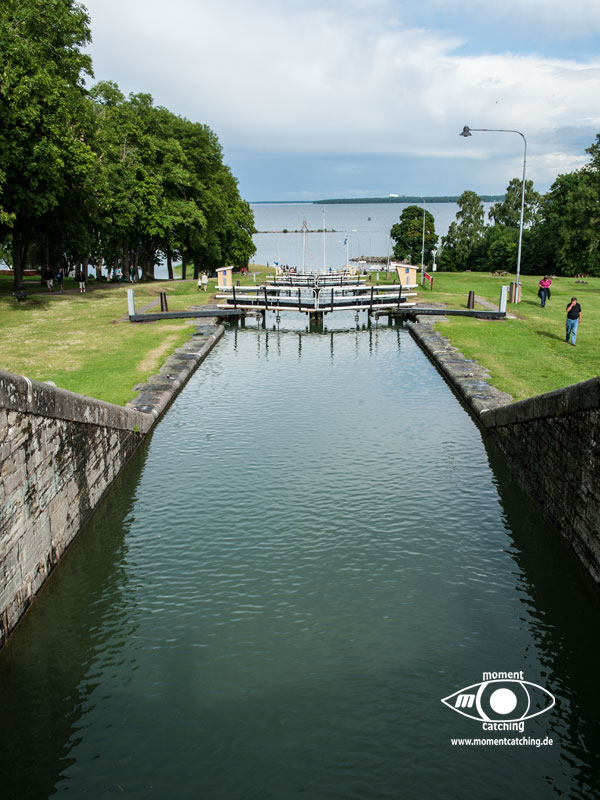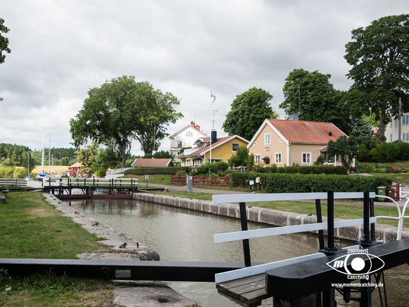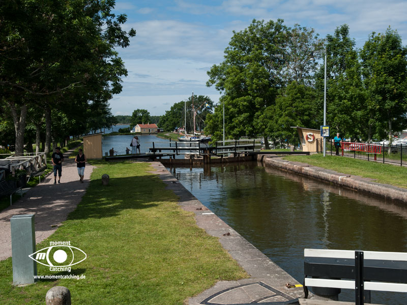 Der Streckenabschnitt Söderköping bis Stegeborg war auch der Abschied für uns vom Göta Kanal. In Mem haben wir uns noch eine Nacht aufgehalten. Die Gaststätte in dem Hafen war eine herbe Enttäuschung. Sehr teuer und dafür geschmacklich unterer Durchschnitt. Mem ist ein kleiner Ort, der touristisch nicht viel zu bieten hat, dafür aber eine sehr schöne Natur bietet. Der Slätbaken bietet traumhaft schöne Ausblicke auf die Landschaft. Er führte uns geradewegs nach Stegeborg. Die Ufer wurden zunehmend felsig und die ersten Schären tauchten auf. Der Ort Stegeborg lohnt einen längeren Aufenthalt. | 13. August 2013 | |