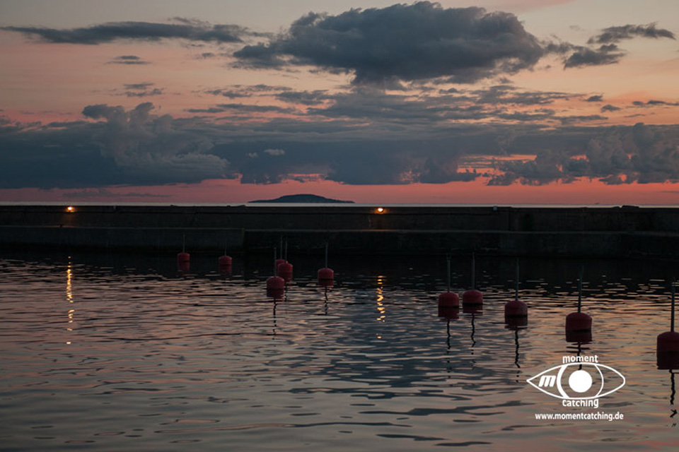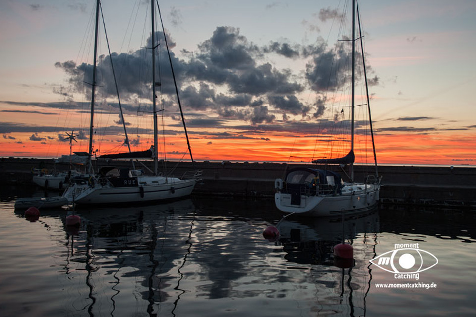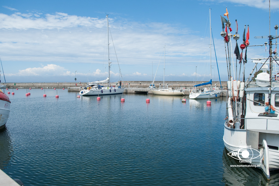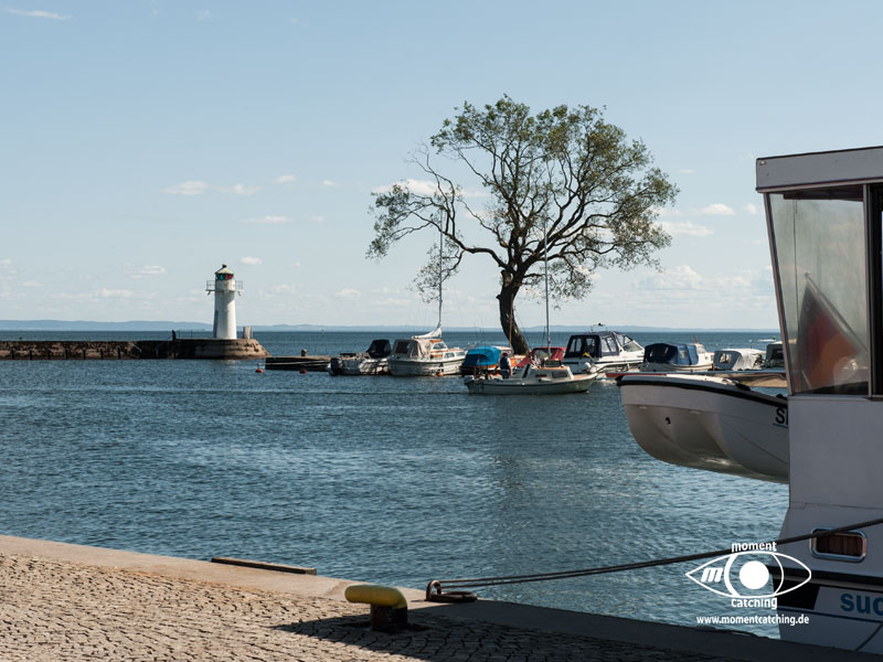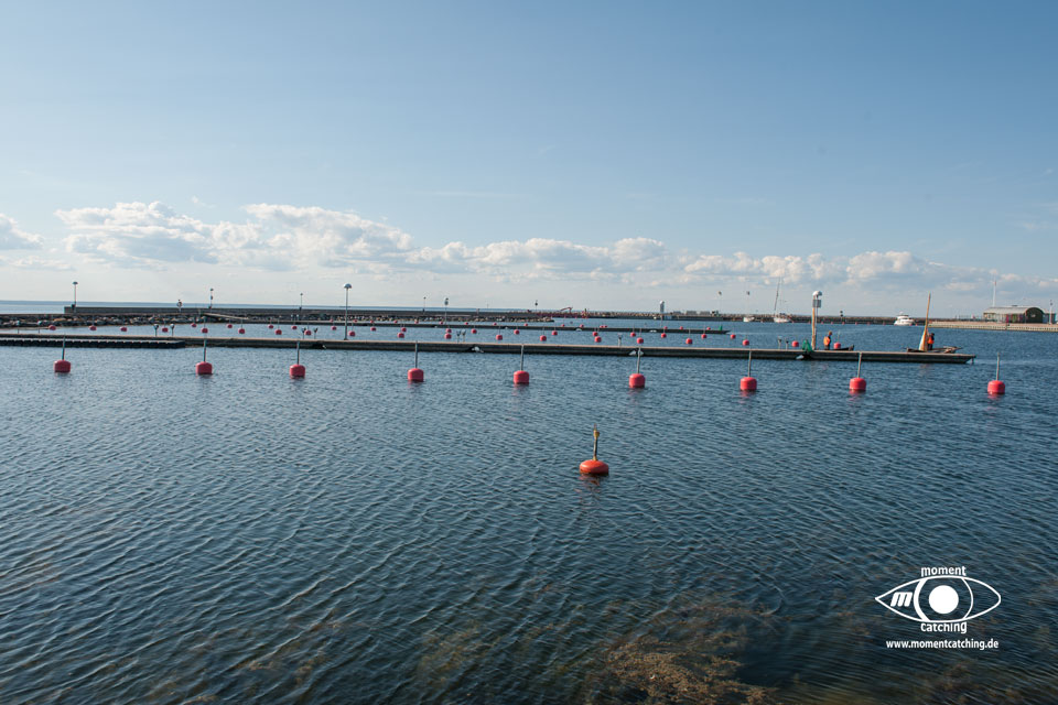 Hafen, der ca. 75 Gastplätze anbietet. Der Preis bewegt sich schon in der oberen Klasse. Der Grund dafür kann eigentlich nur die schöne Natur der Insel sein. Im Hafen gibt es eine Sommergaststätte. Bei nördlichen Winden steht kräftiger Schwell in den Hafen. Für Unruhe sorgt auch die Fähre. Die besondere Natur der Insel sowie die Aussichtsmöglichkeiten weit über die Hanöbucht haben uns sehr beeindruckt. | 05. September 2013 | |