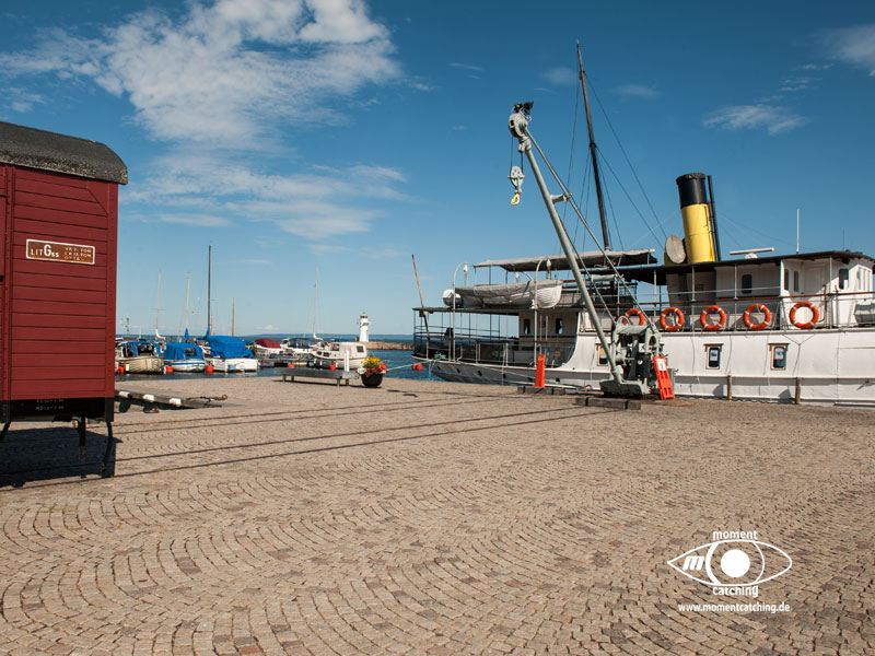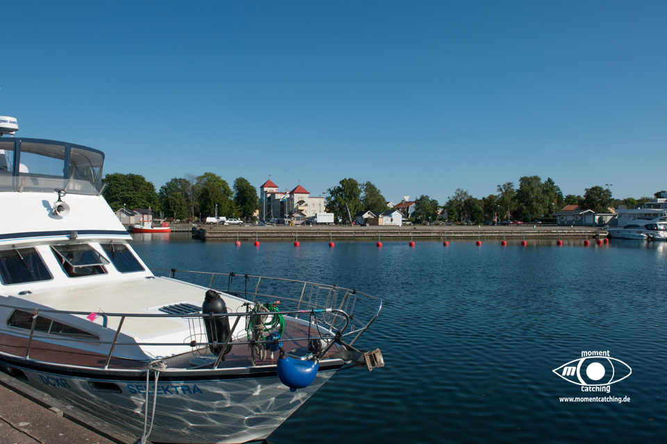 Kalmar ist eine der ältesten Städte Schwedens und durch seine Lage an der engsten Stelle des Kalmarsundes hatte es schon sehr früh eine strategisch wichtige Rolle. Monumentalster Zeuge dieser Rolle ist das Schloss Kalmar und Reste der Stadtmauer. Die Besichtigung des Schlosses können wir nur jedem empfehlen. Es ist eines der best bewahrten Renaissanceschlösser Europas. In seinen Räumen wurde die sogenannte Kalmarunion besiegelt, ein politisches Bündnis zwischen Dänemark, Norwegen und Schweden. Aber auch die Stadt selbst hat einiges zu bieten. Die eigentliche Altstadt mit den sehenswerten Holzhäusern befindet sich im Bereich vor dem Schloss. Etwas nobler und interessanter für Shoppingbegeisterte geht es im Bereich des Hafens innerhalb der Stadtmauerreste zu. Im Hafen, wenn man im vorderen Bereich längsseits liegt, kann man vom Steg aus direkt in ein großes Einkaufscentrum gehen.