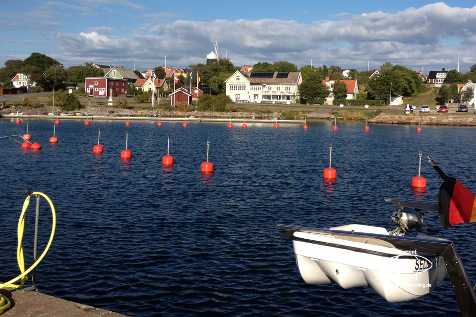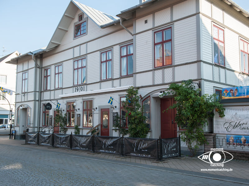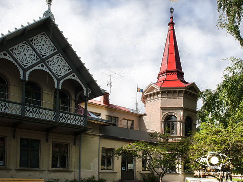 Varberg haben wir mit den Rädern besucht. Wir lagen mit der Selektra in Träslövsläge. Dort ist ein Yachthafen mit diversen Gastliegeplätzen und einer sehr zu empfehlenden Gaststätte, in der man auch die Hafengebühren bezahlt. In dem kleinen Fischerort gibt es einen sehr guten Fischladen, in dem man sowohl frischen Fisch, als auch geräucherten Fisch kaufen kann. Ein besonderer Renner muss wohl die Eisdiele sein, wann immer wir dort vorbeikamen, war eine große Warteschlange auf der Straße. Im Yachthafen gibt es eine Bunkerstelle für Diesel. Bezahlt wird nur mit Karte. Ein ausgeschilderter Radweg führt nach Varberg fernab von der großen Verkehrstrasse durch Natur und vorbei an idyllischen Gärten und Wohnhäusern. Die auf einer Anhöhe thronende Festung ist schon von weitem gut sichtbar. Die letzten 1,5 km fährt man direkt an der Küste entlang. Sehr sehenswert ist das sogenannte Kallbadhus (Kaltbadehaus) im maurischen Stil. | 07. Juni 2013 | |