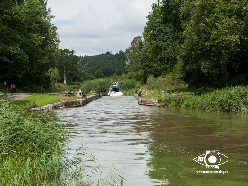 Der Kanal ist 61,55 km lang und verbindet die Elbe mit Lübeck und damit mit der Ostsee. Man muß auf seiner Gesamtlänge 7 Schleusen passieren. Die Benutzung der Schleusen ist relativ problemlos und für den geübten Sportschiffer keine Herausforderung. Die zulässige Geschwindigkeit für Sportboote beträgt 10 km/h (wenn nicht anders ausgewiesen). Es empfiehlt sich diese Geschwindigkeit einzuhalten, da die Schleusenwärter sich untereinander verständigen und genau wissen, wann man vor der Schleuse auftauchen muss. Außerdem wird meistens ohnehin nur in den einmal begonnenen Gruppen geschleust. Wir empfinden die Geschwindigkeit als angemessen, führt doch der Kanal durch eine sehr schöne Landschaft. Durch seine Bauweise, er hat am Ufer überwiegend Pfähle, die ca 20 cm unter der Wasseroberfläche enden (Achtung, gefährlich), sind die Ufer teilweise mit Schilf bewachsen, was dem Kanal das Aussehen eines natürlichen Flusslaufes gibt. Wer früh genug startet, schafft den Kanal an einem Tag zu durchqueren (ca. 8 Stunden).