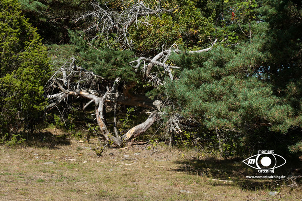 Byxelkrok ist ein kleiner Fischerort im Norden von Öland an der Kalmarsundseite. Es war unser erster Hafen auf Öland. Schnell hat uns die Insel Öland in ihren Bann gezogen. Ganz im Nordosten im Naturreservat Trollskogen findet man einen Wald, in dem man die Fantasien um das Thema Trolle nachvollziehen kann. In dieser vom Wind der offenen Ostsee besonders hart betroffenen Gegend haben es die Bäume nicht leicht aufrecht zu wachsen. Vielmehr ducken sie sich häufig am Boden und erzeugen für Menschen mit genügend Fantasie die skurrielsten Formen. An dem zumeist steinigen Strand begegneten uns erstmalig die aufeinandergetürmten Steine. Offensichtlich gibt es für den Sinn und Zweck dieser Steinstapel sehr unterschiedliche Auffassungen. In dieser Gegend scheint die norwegische Definition, dass diese Steinstapel vor Trollen schützen sollen, die naheliegendste, schließlich befindet man sich doch hier im Trollwald. Nördlich von Byxelkrok ist das Naturreservat Neptuni akrar. Es ist ein langgestrecktes Geröllfeld mit älteren Strandwällen und einem Gräberfeld aus der Wikingerzeit. Aber nicht nur die historischen Sehenswürdigkeiten rechtfertigen einen längeren Aufenthalt, sondern ganz besonders die sich ständig verändernde Landschaft. Dichte und hohe Wälder, Moore und offene Heidelandschaft folgen hier im Norden nahtlos aufeinander. Unsere Augen waren ständig neuen Anblicken ausgesetzt. Man kann sich schnell in die Insel Öland verlieben. | 23. August 2013 | |