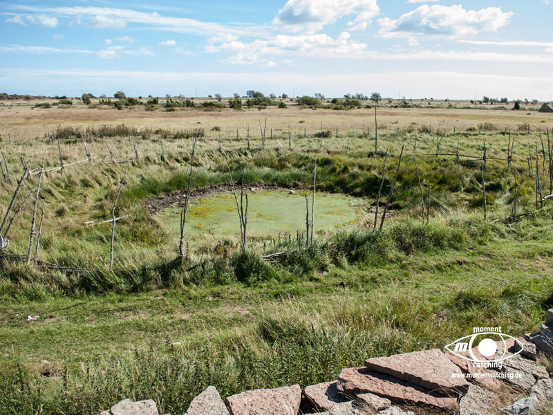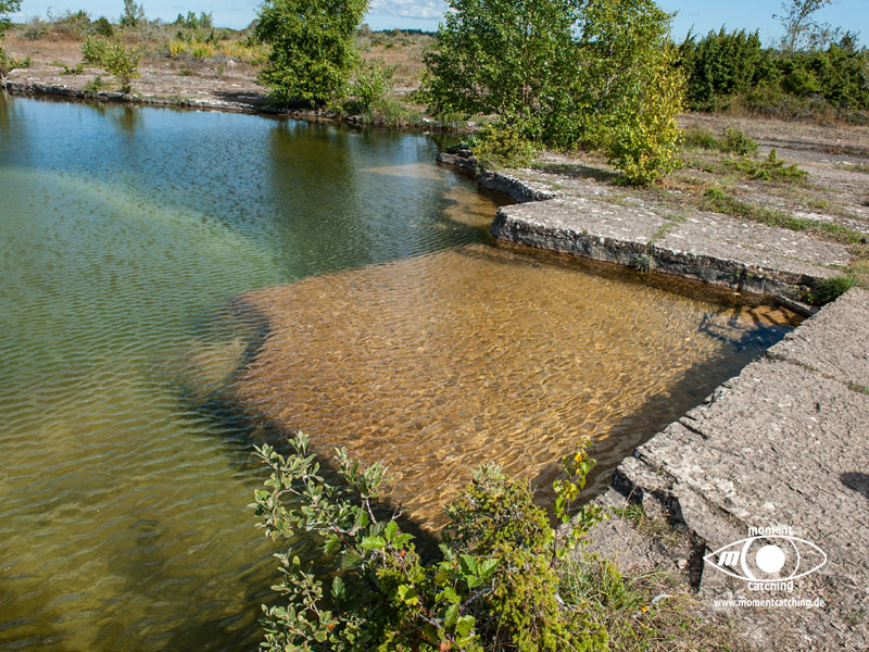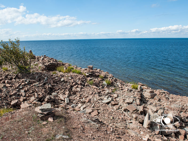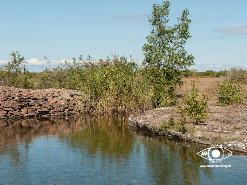 Der kleine Fischereihafen von Sandvik bietet auch Gästen Liegeplätze an. Sandvik ist das Zentrum des Steinabbruches auf Öland. Noch heute gibt es nördlich von Sandvik einen aktiven Steinbruch. Das Wahrzeichen von Sandvik ist die schon weit sichtbare Holländermühle, in der sich heute eine Gaststätte befindet. Die Mühle ist wohl die größte Mühle in Nordeuropa. Südlich von Sandvik erstreckt sich eine bizarre Landschaft, die durch den Abbau des dortigen Kalkgesteins stark geprägt ist. Die Strände bestehen aus dem Abfallgeröll und sind teilweise übersät mit Steintürmchen, die vor dem Unwesen der Trolle schützen sollen. Die beiden Moorflächen Knisa Mosse und Lofta Mosse können Naturliebhaber schnell ins Schwärmen kommen lassen. Die vielen kleinen Tümpel, überwiegend mit Steinboden, bieten vielen Tierarten Lebensraum. Wer mit offenen Augen durch die Landschaft geht, findet immer noch in den Steintrümmern versteinerte Tiere aus längst vergangenen Zeiten. Von alten Zeiten zeugen auch die vielen Gräber und Grabanlagen im Umfeld von Knisa und Lofta. Wir waren jedenfalls von dieser Gegend sehr begeistert. | 26. August 2013 | |