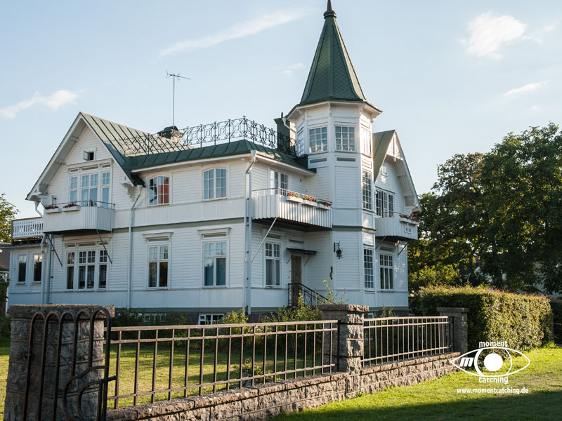 Wir haben am 27.8. den Yachthafen von Borgholm erreicht und staunten nicht schlecht, dass der Hafen wie ausgestorben war. Beim Frühstück konnten wir beobachten wie der Hafenmeister an den großen Schwimmstegen die Wasserschläuche einsammelte. Das ist eben Schweden. Mit dem Ende der Schulferien, Mitte August, ist auch die Saison beendet. Das hat den Vorteil, dass man sich den Liegeplatz aussuchen kann. In der Saison muss man zufrieden sein, wenn man überhaupt einen bekommt. Die Stadt Borgholm ist trotzdem sehr schön, findet man hier doch viele mondäne Villen aus Holz. Sehenswert ist auch die Schlossruine etwas außerhalb und auf einer Anhöhe gelegen. Das imposante Schloss ist bereits 1806 ausgebrannt und seit dem nur noch eine Ruine. Allein der Ausblick von dort oben lohnt schon den Besuch. Bei schönem Wetter sieht man den Kalmar Sund und bei klarer Sicht die Ölandbrücke, die die Insel Öland mit dem Festland verbindet. Etwa 20 Minuten zu Fuß vom Yachthafen Borgholm erreicht man das Schloss Solliden. Hier verbringt die schwedische Königsfamilie ihre Sommerferien. Der Schlosspark steht täglich Besuchern offen und mit etwas Glück ist man in den Ferien der royalen Familie ganz nah. Der Park ist super gepflegt und sehr schön gestaltet. Der Besuch lohnt auf jeden Fall. | 28. August 2013 | |