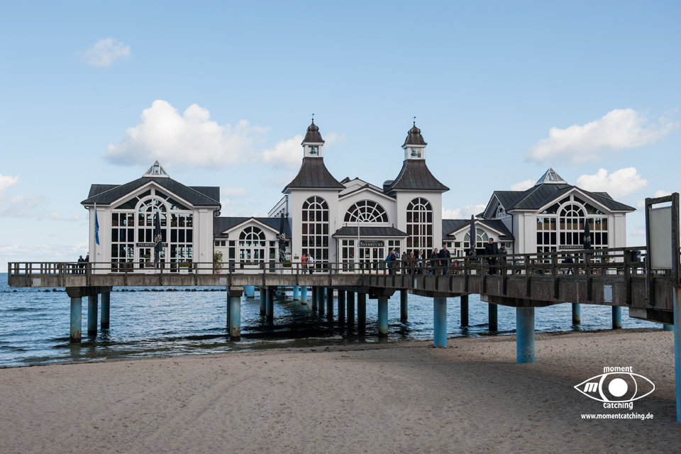 Seit 1998 strahlt die Seebrücke vom Ostseebad Sellin wieder in ihrer historischen Gestalt von 1927. „Himmelsleiter“ und Fahrstuhl führen hinab zu der 394 Meter langen Holzkonstruktion mit Palmengarten und Kaiserpavillon. Hier kann man heiraten, feiern oder einfach das gastronomische Angebot genießen. Jedes Jahr Ende Juli ist Seebrückenfest! Wer lieber alles von unten sehen will, steigt in die Tauchgondel und fährt hinab zum vier Meter unter Wasser liegenden Besucherraum. Bei schönem Wetter spielen die Villen in der Wilhelmstraße mit ihren überwiegend hellen Farbanstrichen ihren ganzen Charme aus. Ihre sehenswerten Erker, Türmchen und Veranden prägen den Flair eines Ostseebades, wenngleich die Bäderarchitektur eigentlich kein bestimmter Stil ist. Die Architektur dieser Häuser ist einfach ein Sammelsurium unterschiedlicher europäischer Baustile. Aber vielleicht ist das gerade das Besondere. Ein Juwel vom Ostseebad Sellin ist aber auch der helle, feinkörnige Sand des Strandes und das klare Wasser der Ostsee. | 23. September 2013 | |
