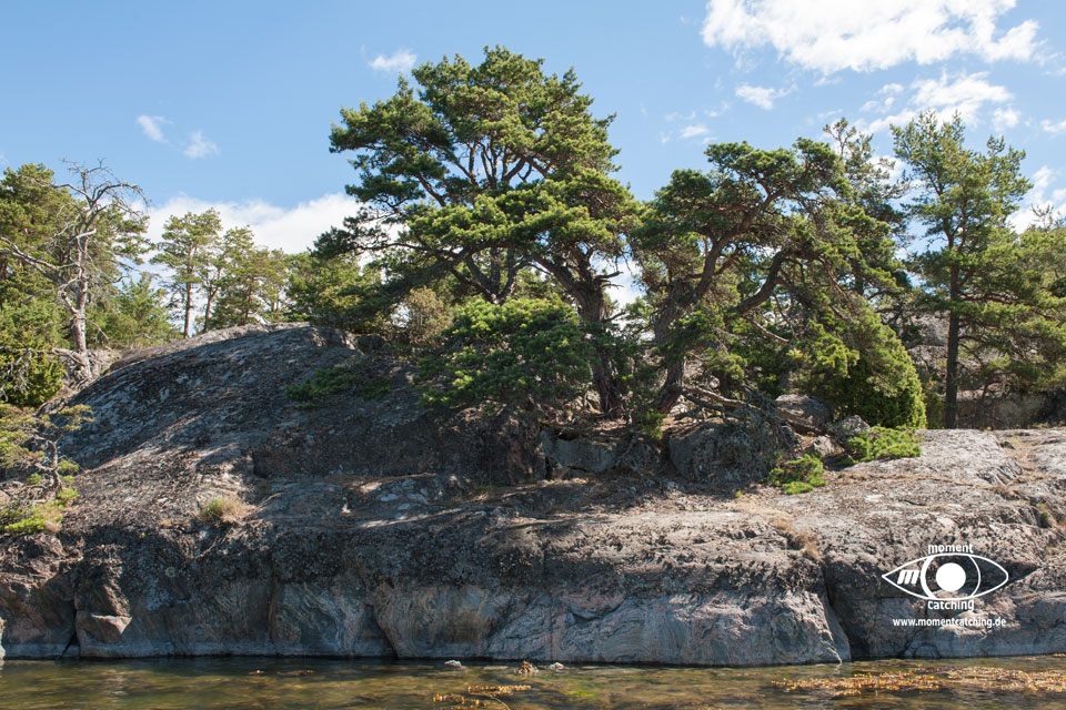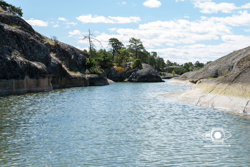 Auch dieser Weg führt durch traumhaft schöne Schärenlandschaft und fast jede größere Schäre lädt zum Verweilen ein. Aber da hätte selbst unsere Zeit nicht gereicht. Hinzu kommt, dass große Flächen der Schärengebiete Naturreservate sind, die zu bestimmten Jahreszeiten gesperrt sind. Siehe hierzu weiter unten, unter Abruf die Sperrzeiten.