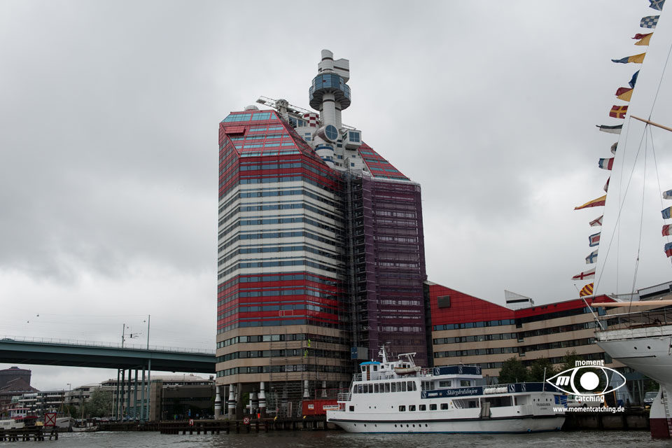 Für unseren Aufenthalt in Göteborg haben wir uns den Yachthafen in Longedrak ausgesucht. Er gehört zum königlichen Yachtclub GKSS. Königlich ist auch der Preis. Mit über 40,- € ohne WLAN pro Nacht, war es der teuerste Yachthafen, den wir in Schweden benutzt haben. Er bietet aber wenigstens Strom und Wasser und gut ausgestattete Sanitäranlagen. In 200 Meter Entfernung erreicht man die Straßenbahn, mit der man nach ca. 15 Minuten in der City ist. Nicht allzuweit entfernt gibt es auch einen gut asugestatteten Laden mit Bootszubehör. Hafenbenutzer bekommen dort Rabatt. In dem Hafen befindet sich die Nymbuswerft, die wir aber nicht als störend wahrgenommen haben. Unsere Stadtbesuche haben wir mit dem Fahrrad gemacht. Langedrag ist offensichtlich das Nobelviertel von Göteborg und hat auf einer Anhöhe sehr schöne Villen mit Blick auf die Mündung des Göta Älv.