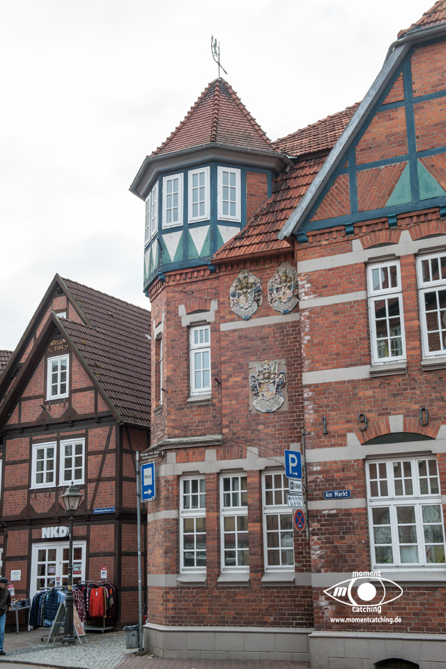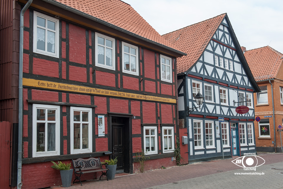 Heute wieder so ein opulentes Frühstück bekommen. Außerdem hat uns Gisela zwei Kissen für unsere Sitzecke geschenkt, die sie selbst aus Stoffresten genäht hat. Sie passen farblich super. Nun sind die beiden Tage schon wieder beendet. Es war richtig schön bei den beiden und wir wurden rundum verwöhnt. Wir haben in Celle unmittelbar neben dem Altstadtviertel einen Platz zum Parken gefunden. Die Altstadt ist ja wirklich wunderschön. Es gibt noch sehr viele, sehr gut erhaltene Fachwerkhäuser. Wir haben das Schloss einmal umrundet. Die angebotene Ausstellung konnten wir uns nicht ansehen, da die Herrschaften gerade geschlossen haben um Mittagspause zu machen. Bei der Weiterfahrt mussten wir Celle fast einmal umkreisen, da die Innenstadt für Lkw gesperrt ist. Kurz vor dem Ende von Celle haben wir einen ALDI gefunden. Wir haben dort unsere Vorräte aufgefrischt und das Leergut abgegeben. Leider hat unser Navi die Adresse unseres nächsten Stellplatzes (Zur Allerwelle) nicht angenommen. Susanne fand sie aber in ihrem IPad. Der Platz ist direkt am Ufer der Aller, die hier aber schon fast Bachvormat hat. Auf der Straße nach Gifhorn stand an jeder Waldeinfahrt ein Nutten-Womo. So eine Anhäufung habe ich noch nirgendwo gesehen.