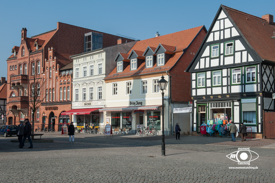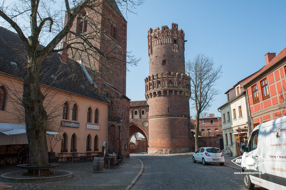 Heute sind wir versehentlich eine Stunde zu früh aufgestanden. Ich war der Meinung es ist dreiviertel neun, es war aber erst dreiviertel acht. Es schien die Sonne, aber draußen wehte immer noch der eiskalte Wind und das recht kräftig. Nach dem Frühstück sind wir mit den Kameras in die Stadt gegangen. Sie ist immer wieder für uns ein Genuß. Die schönen Fachwerkhäuser und die Burganlage macht uns gute Laune. Trotzdem war es lausig kalt. Rathaus und Kapelle hatten geschlossen. Montags hat in Tangermünde alles Ruhetag. Nach einem faulem Nachmittag, ich habe Bilder und Videomaterial aufbereitet, sind wir zum Griechen, gleich am Rathaus, gegangen. Es war sehr Lecker und angenehm.