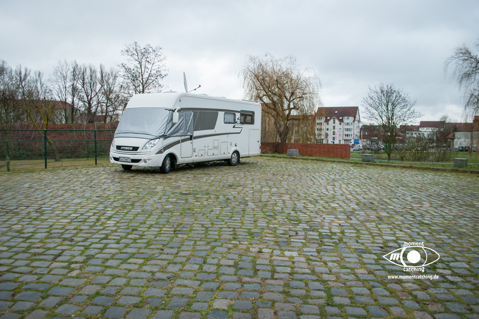 Ich bin früh ins Blaue gestartet um frische Brötchen zu beschaffen. Hat auch gut geklappt, der Weg hielt sich in Grenzen und die Brötchen waren hervorragend. Nach einem entsprechend guten Frühstück sind wir mit den Kameras in die Altstadt gegangen. Die Fußgängerzone ist relativ klein, aber sehr schön. Es gibt hier noch viele historische Fachwerkhäuser. Etwas enttäuscht waren wir von dem Schloss. Es ist durch einige Anbauten in seiner Architektur gestört. Kurz vor Eintritt der Dunkelheit tauchte neben uns ein ziemlich verkommenes und altes Womo auf. Offensichtlich Oma und Opa mit Enkelkind. Schon eine halbe Stunde später war unser Strom weg, obwohl ich gerade einen Euro nachgesteckt hatte. Schnell stellte sich heraus, dass der liebe Nachbar einen Defekt auf seinem Stromanschluss hat und damit beide Stromsäulen lahmgelegt hat. Ich habe die auf den Kästen angegebene Notrufnummer gerufen. Sie landet beim Schwimmbad. Etwa 1 Stunde später tauchte ein Handwerker auf und nach dem wir gemeinsam gesucht und gefummelt haben, war wieder Strom da. Bei den skurielen Nachbarn lief jetzt die Heizung, die sehr abenteuerliche Geräusche von sich gab. Man hätte vermuten können, dass sie jeden Moment explodiert. Unser eingeworfenes Geld im Stromkasten war weg und wir mussten neu nachladen. Wir haben nur gehofft, dass der Idiot nicht wieder auf die Idee kommt sich an das Stromnetz anzuschließen.