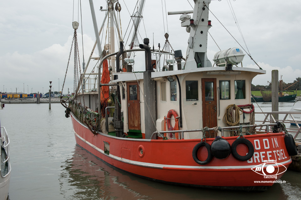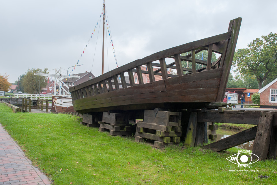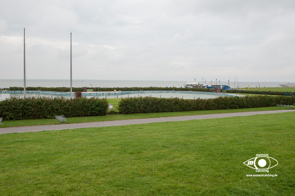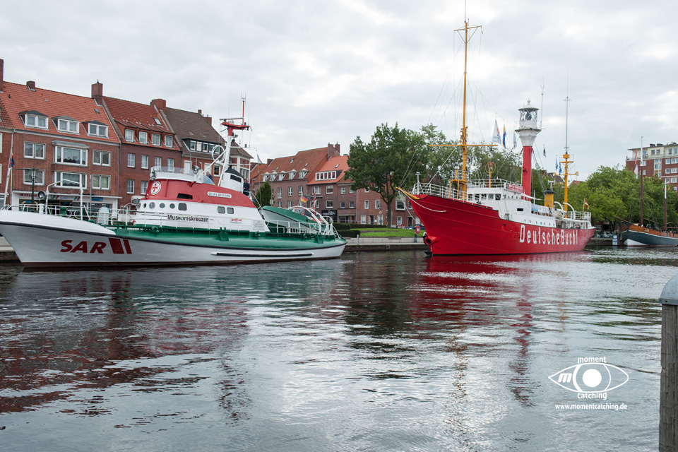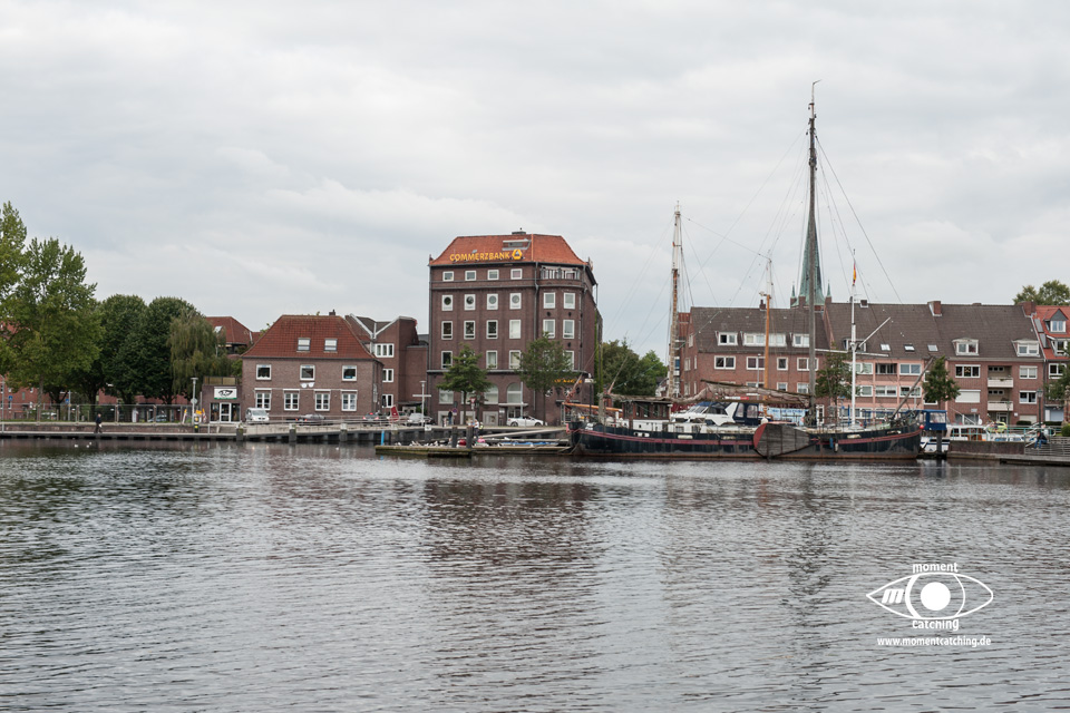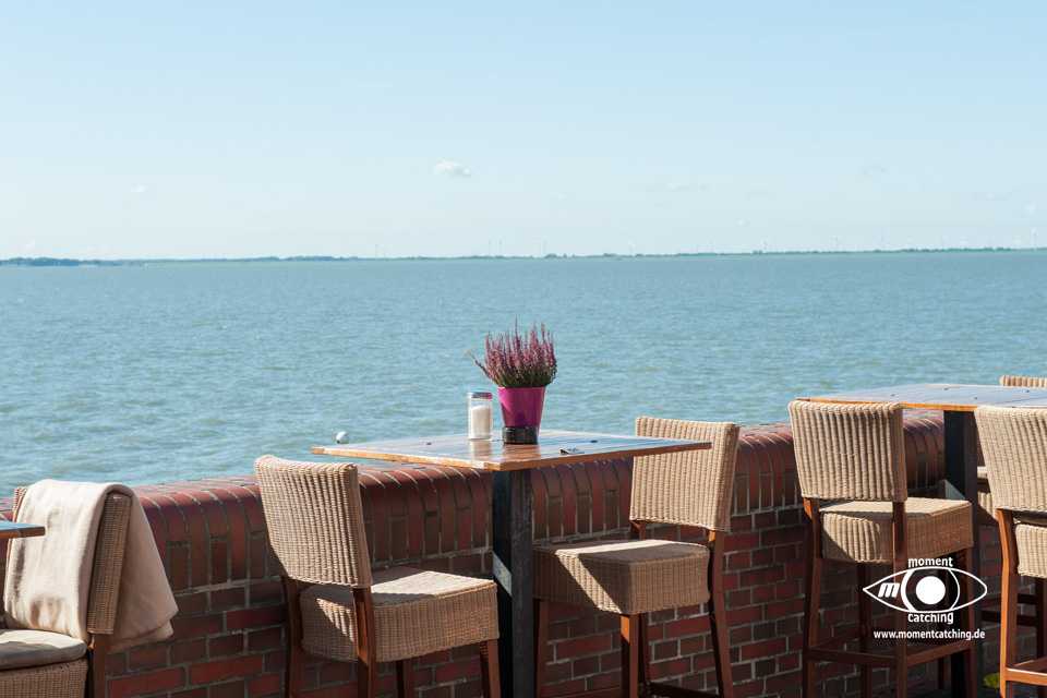 Das Stauwerk ist wirklich beeindruckend. Unsere Rücktour führte uns dieses mal vor dem Deich lang. Da gab es sogar einen regulären Radweg. Das hat richtig Spaß gemacht und meine neue Jacke hat die Bewährungsprobe bestanden. Ich bin nicht nassgeschwitzt. Also können wir am Montag noch eine für Susanne besorgen. Nach dem Kaffee habe ich mal wieder meinen Liegestuhl benutzt mit Blick auf das Hafengelände. Die neue Decke ist so richtig kuschelig und wärmt gut. Zum Abend wollten wir in den Griechen gehen, den wir bei einem Spaziergang bei uns entdeckt haben. Als wir davor standen, stellten wir fest, dass es sich dabei ledeglich um einen Lieferservice handelt. Also sind wir weiter in die Stadt gelaufen. Auf dem Museumsschiff Emden sind wir in das kleine Bordrestaurant gegangen. Wir hatten Glück, dass wir den letzten freien Tisch drinnen erwischt haben. Ich habe Matjes mit Bratkartoffeln und Susanne hatte Labskaus gewählt. Beide Essen waren absolut Top. Diese kleine Gaststätte ist dann sogar ein Geheimtipp, zumal auch der Preis stimmt.