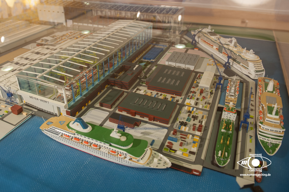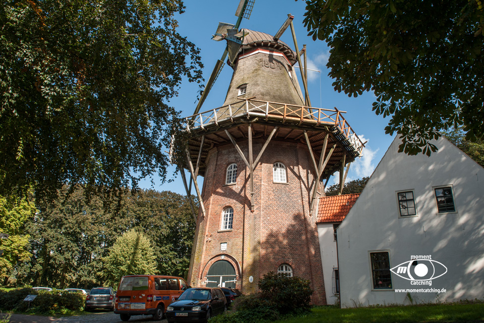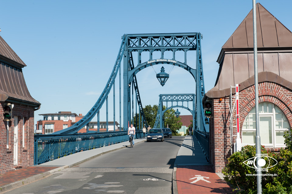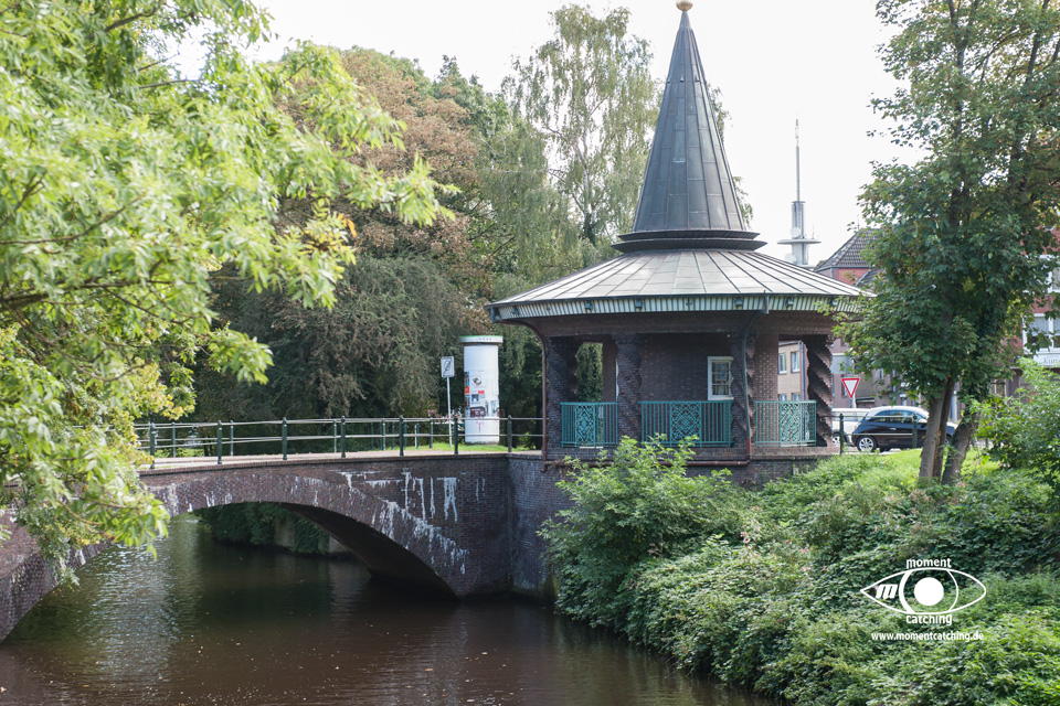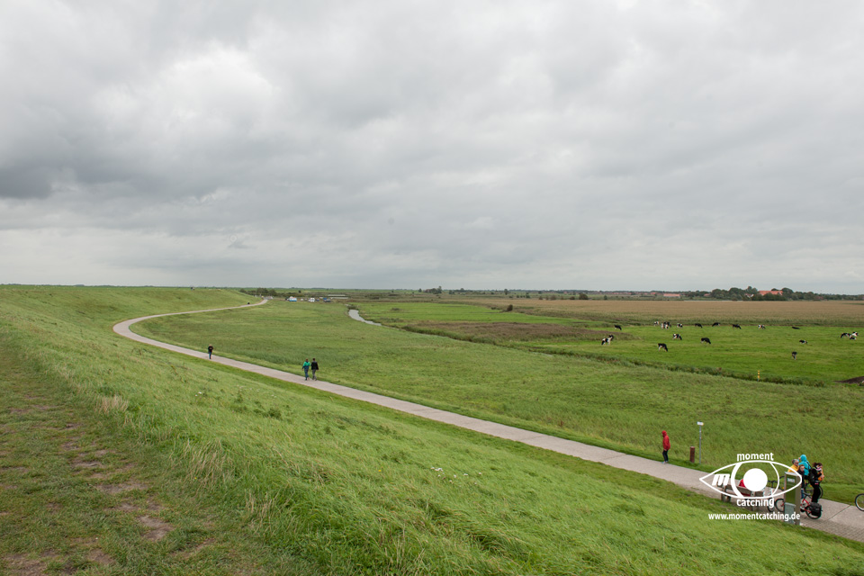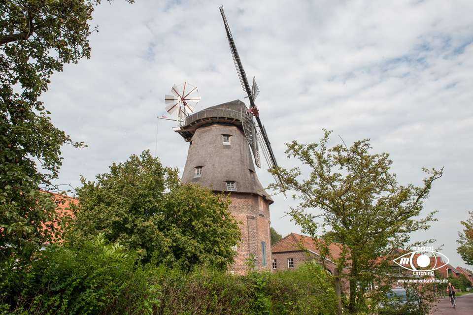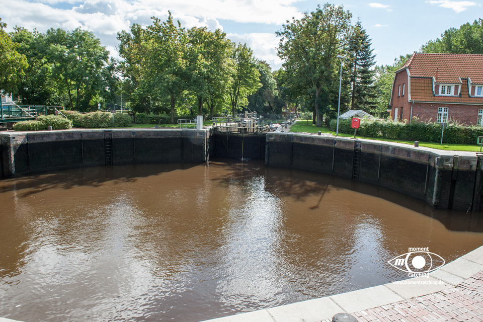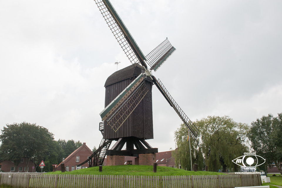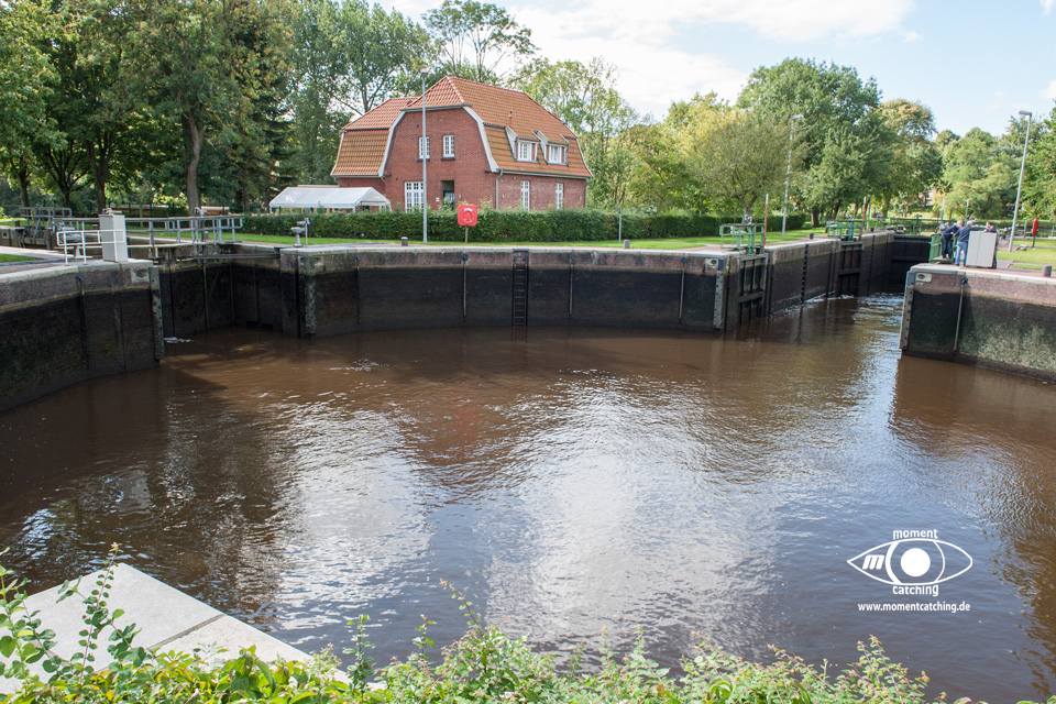 Als wir ein Stück den Wallweg genommen hatten, kamen wir am Schützenhaus an. Hier bereitete sich die Schützengilde gerade auf den Umzug vor. Für uns eine gute Gelegenheit den Start zu filmen. Dann ging es weiter zu der Mühle und dann zu der einzigen noch genutzten Rundschleuse Europas. Hier werden vier Wasserstraßen miteinander verbunden. Das ist schon ein sehr interessantes, technisches Bauwerk. Nun ging es zurück zum Womo. Nach dem wir uns regeneriert haben, sind wir wieder gestartet. Ziel ist nun das Stauwerk der Ems. Ich habe dafür nun meine neue Jacke angezogen, um sie zu testen. Beim Hinweg hatten wir Rückenwind. Unsere EBikes leißen uns gute 25 km/h fahren, mehr geht nicht, tolle Räder.