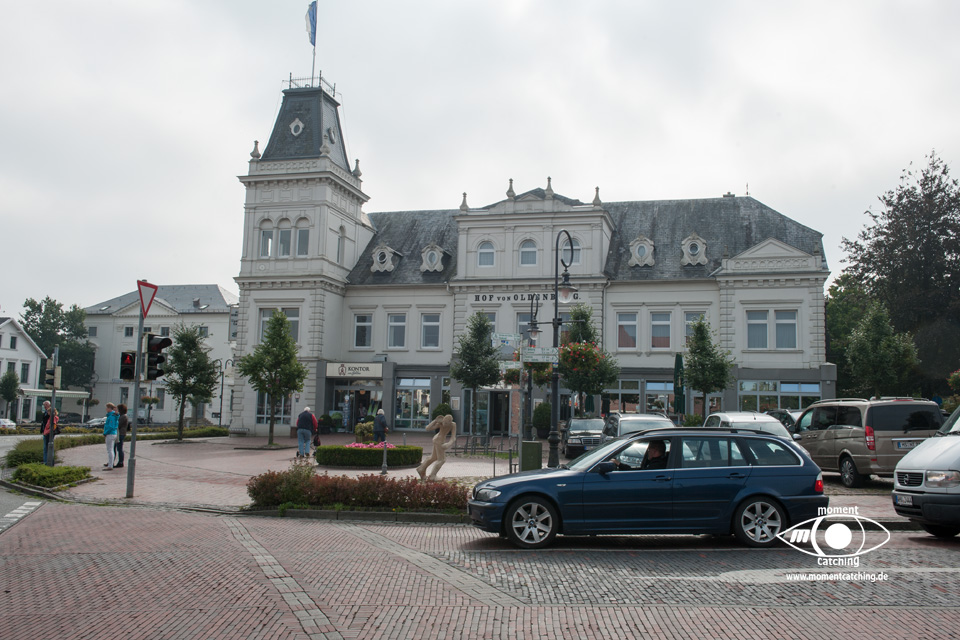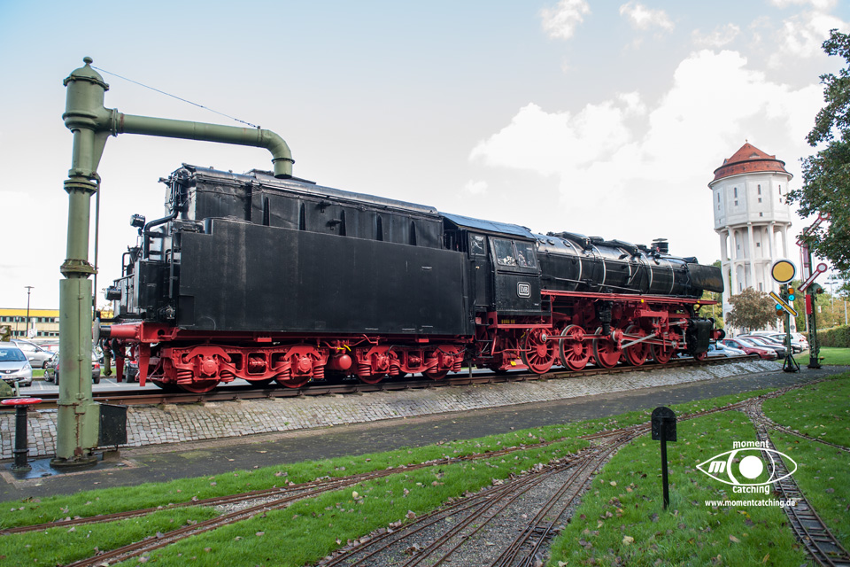 Heute hat es kurz vor dem Aufstehen nochmal kräftig geschüttet. Danach kam dann aber die Sonne heraus. Für unser Frühstück habe ich Brötchen von der Tankstelle geholt. Die haben besser geschmeckt als die in Greetsiel. Nach dem Frühstück sind wir mit den Rädern in die Stadt gefahren. Als erstes waren wir in dem Fahrradladen um die georderte Tasche abzuholen. Das freundliche Angebot die Klickfixaufnahme gleich anzubauen, haben wir gerne in Anspruch genommen. Die wollten noch nicht einmal Geld dafür haben. Ich habe mir gleich noch eine Regenjacke gekauft. Sie soll winddicht, wasserdicht und trotzdem atmungsaktiv sein. Das ganze für 80 €. Na schauen wir mal. Unser nächstes Ziel war die Museumslok am Hauptbahnhof. Es ist eine Lokomotive der Baureihe 043. Schön für mich, da kamen doch viele Jugenderinnerungen hoch.