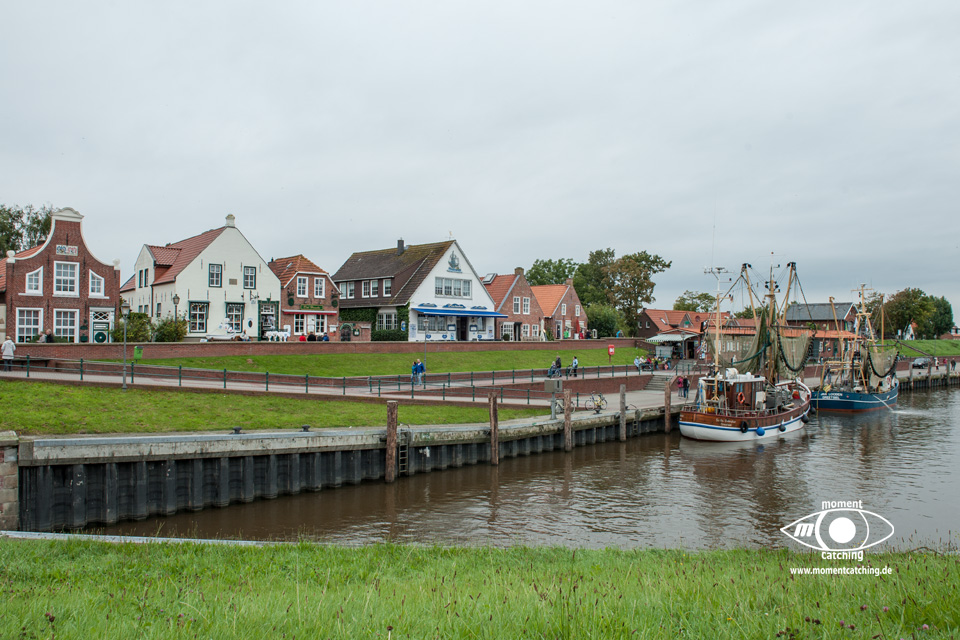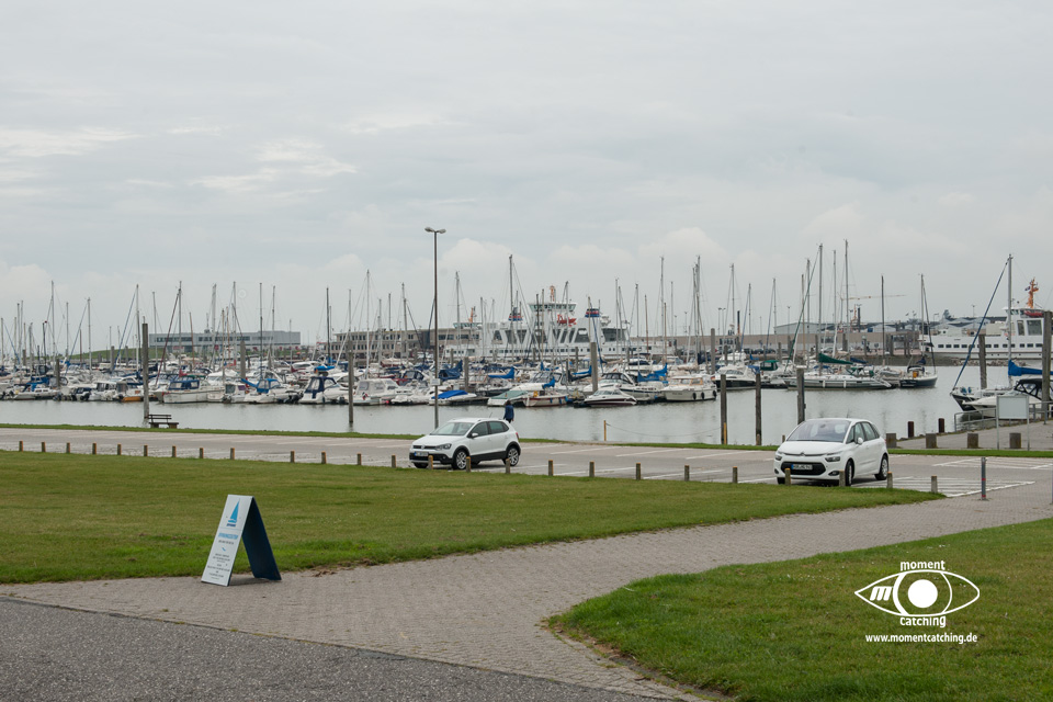 Zu unserem Erstaunen war der Platz richtig voll. Für unsere Länge war nur noch ein einziger Platz frei. Da wir rückwärts eingeparkt sind, passten wir gerade so rein. Durch das Rückwärtseinparken konnten wir hinten etwas überstehen. Vor uns lag nun aus unserer Sitzecke blickend direkt der Binnenhafen. Traumhaft schöner Ausblick. Wie immer haben wir einen Spaziergang in die Stadt gemacht. Eine sehr schöne Stadt. Wir haben sogar einen Fahrradladen gefunden, der genau so eine kleine Tasche im Angebot hat wie Susanne es sich vorgestellt hat. Wir haben sie erstmal zurücklegen lassen und kommen mit den Fahrrädern sie abholen. Im Womo waren wir nur auf der Toilette, um dann noch einen Abstecher zu dem nahegelegenen Einkaufzentrum zu machen. Dort ist ein relativ großes und neues EDEKA. Danach war Kaffeetrinken mit der leckeren Torte aus Greetsiel angesagt.