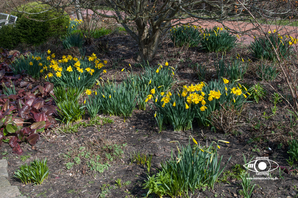 Heute Morgen, als ich zum Bäcker ging, war im Schatten von unserem Womo der Rasen mit Raureif bedeckt. Die Nachttemperatur war auch nur so um die Null Grad. Was für ein verrücktes Frühjahr. Aber die Narzissen blühen schon kräftig. Nach dem Frühstück sind wir wieder in die Stadt gelaufen, dieses mal in die andere Richtung und zwar durch den Kurpark. Wobei sich der Kurpark in Grenzen hält aber um diese Jahreszeit sich mit blühenden Kroküssen und Narzissen präsentiert. Auf dem Rückweg zum Womo waren wir noch in der Apotheke und haben für Susanne ihre Darmtabletten besorgt. Nach Rückkehr habe ich wieder draußen meinen Mittagsschlaf gemacht. Langliegend geht es meiner Nase noch am Besten. Gegen Abend war der Schnupfen richtig heftig. Ich hatte einen Kopf wie unter einem zu engen Helm. Das Wasser lief aus Nase und Augen. | Ohne |