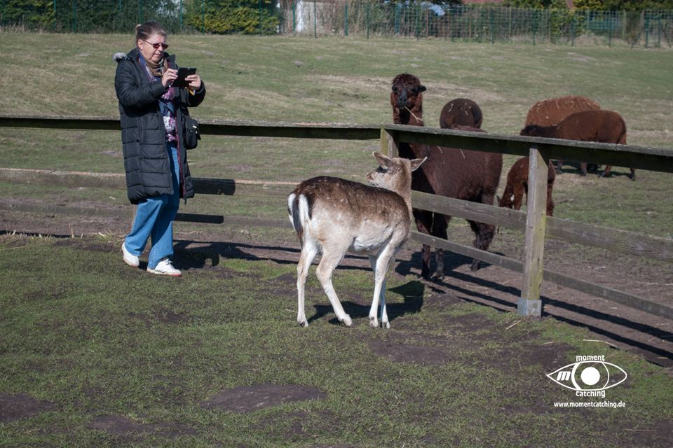 Heute, als wir aufgestanden sind, mussten wir feststellen, dass unsere Nachbarn auch weg waren. Nun stehen wir alleine auf dem Stellplatz. Die Brötchen waren auch wieder lecker und wir haben nochmals einen Tag verlängert. Schon kurz nach dem Frühstück drückte sich die Sonne durch die Wolken und verdrängte den Nebel rasch. Wir sind mit den Rädern in Richtung Gettorf zum Tierpark gestartet. Der war auch sehr gut ausgeschildert. Leider hatte alles was Flügel hat Stubenarresst, da z. Zt. die Vogelgrippe grassiert. Trotz seiner relativ geringen Größe bietet der Tierpark ziemlich viele Tiere. Da das Wetter sehr schön war haben wir den Besuch so richtig genießen können. Susanne blühte, trotz ihrer bösen Erkältung, die sie von mir geerbt hat, richtig auf bei den kleinen Affen, die wie Kinder rumtollten. Nach dem Tiergarten waren wir noch im Ort und wollten eigentlich die Kirche besichtigen. Leider waren auch hier endlich mal wieder Renovierungsarbeiten, was eine Innenbesichtigung verboten hat. Für den Rückweg haben wir uns noch einen kleinen Umweg über Osdorf und Lindhöft gegönnt. Am Womo wieder angekommen war es dann auch schon wieder Zeit für Kaffee und Kuchen. Danach, dem schönen Wetter geschuldet, habe ich mich draußen hingelegt. Mit Schlafen war aber nicht viel. Am Haus der Gaststätte musste einer mit einer Säge arbeiten. Ich habe es vorgezogen dann wieder nach drinnen zu gehen. Dort habe ich Bilder bearbeitet. War wohl auch nützlicher als Schlafen. |