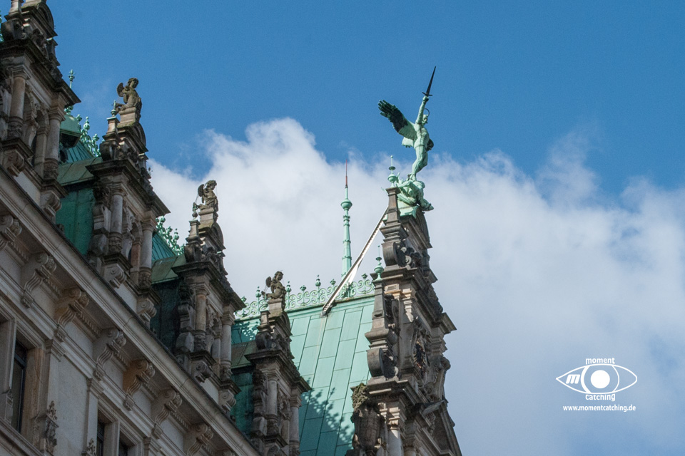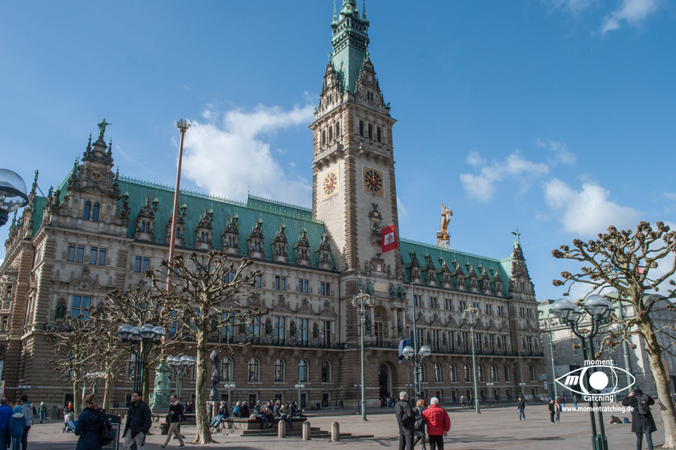 Mit dem Bäcker komme ich nicht richtig klar. Unter dem Begriff Schnittbrötchen bekomme ich jeden Tag andere Brötchen. Heute waren es Körnerbrötchen. Die waren etwas teuerer und dafür ziemlich lappig. Nach dem Frühstück sind wir in die Stadt gefahren und zwar dieses mal nur die eine Station bis zum Hauptbahnhof. Von da aus sind wir die Geschäftsstraße Mönckebergstraße in Richtung Rathaus gelaufen. Unterwegs haben wir uns die St. Petri Kirche angesehen. Sehr einfach und schlicht. Im Rathaus haben wir eine Führung gebucht. Das war wirklich eine gute Idee. Das Rathaus ist sehr sehenswert und schöner als manches Schloss. Danach wollte Susanne unbedingt zum Gänsemarkt. Von da aus sind wir über die Poststraße wieder zurück zum Rathaus. Diese vielen Geschäftsstraßen sind schon beeindruckend. Das macht auch den besonderen Charme von Hamburg aus. Vom Rathausplatz sind wir wieder die Mönckebergstraße zurückgegangen und haben bei C&A ein weißes Hemd gekauft und eine schwarze Krawatte für Ingrids Beerdigung. Bei Saturn, fast nebenan, habe ich mir noch eine schnelle SD-Karte gekauft. Die ist für den Fotoapparat, weil die alte zu langsam ist. Mit der S-Bahn sind wir dann wieder die eine Station zurück zu unserem Womo gefahren. Jetzt waren wir aber auch wieder rechtschaffend schlapp. |